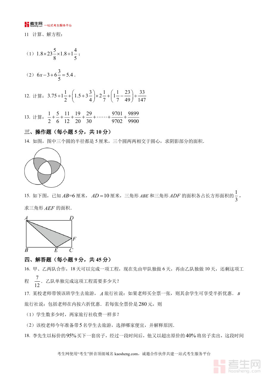 本资料适用于即将升入安徽省合肥市第四十八中学七年级的学生、学生家长及数学学科辅导教师。通过阶段检测与备考规划的结合,能帮助学生更好地适应初中数学学习节奏,增强入学考试准备的针对性与有效性。