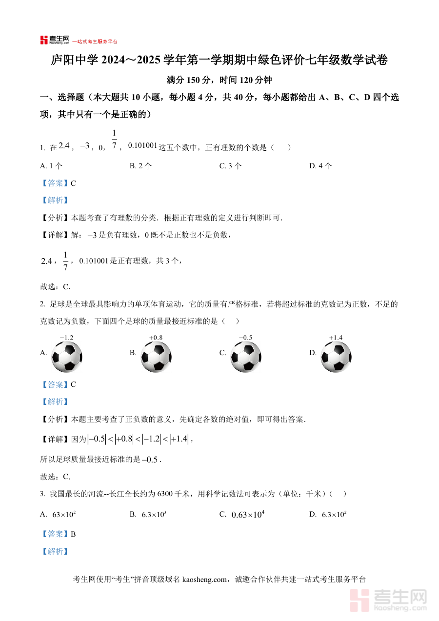 《精品解析:安徽省合肥市庐阳中学2024-2025年学年七年级上学期数学期中试题(解析版)》是针对安徽省合肥市庐阳中学2024至2025学年七年级上学期数学期中考试设计的备考资料。该资料结合特定学年与学段的期中检测需求,依托庐阳中学的教学场景背景,为相关使用者提供了具有针对性的考试内容参考及解析支持。作为阶段性学习成果检验的辅助材料,它能够帮助使用者快速把握该次期中考试的核心方向,为后续的学习与备考搭建清晰框架。