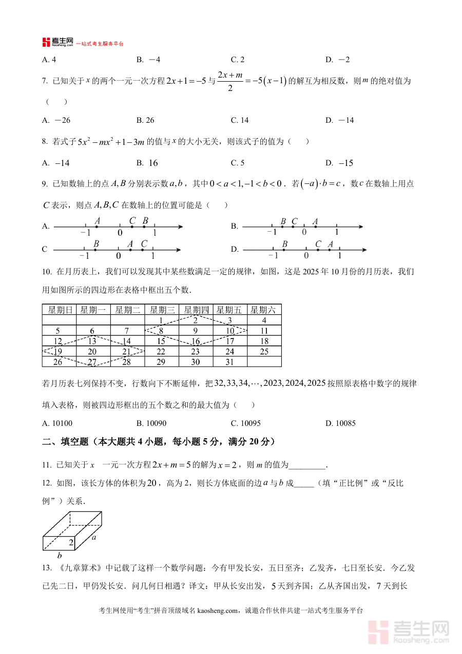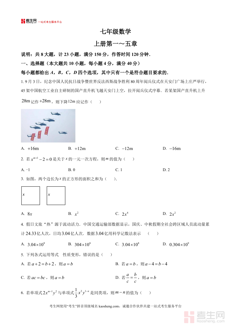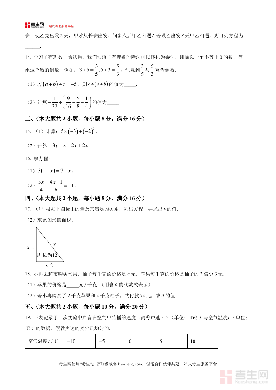 该资料可作为学生了解阶段考试形式与命题方向的重要载体,帮助教师开展学情诊断与教学策略调整工作,同时为家长提供直观了解孩子学习状况的参考工具,助力师生及家长共同把握七年级上学期中期阶段的数学学习重点,优化备考规划与学习安排,提升阶段学习的针对性与有效性。