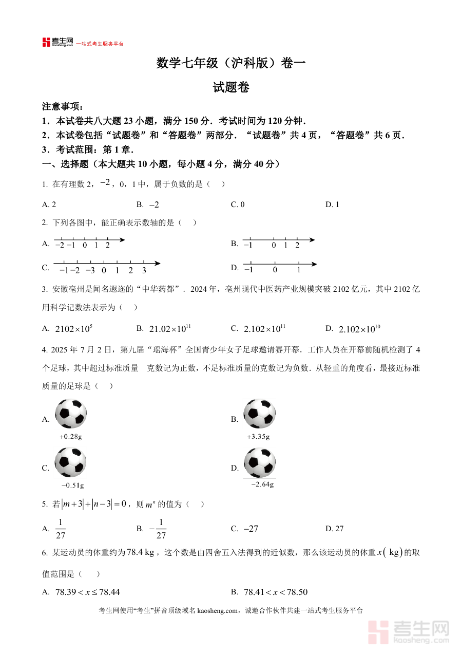《精品解析:安徽省合肥市肥东县2025~2026学年七年级上学期第一次月考数学试题(原卷版)》是针对安徽省合肥市肥东县2025至2026学年七年级上学期第一次月考数学科目的原卷版备考资料,准确对应该地区该学年该阶段的月考考试需求,为使用者提供与实际考试形式一致的试题呈现形式,帮助其提前熟悉考试的整体结构与流程,确保备考方向与当地教学及考试要求高度契合。