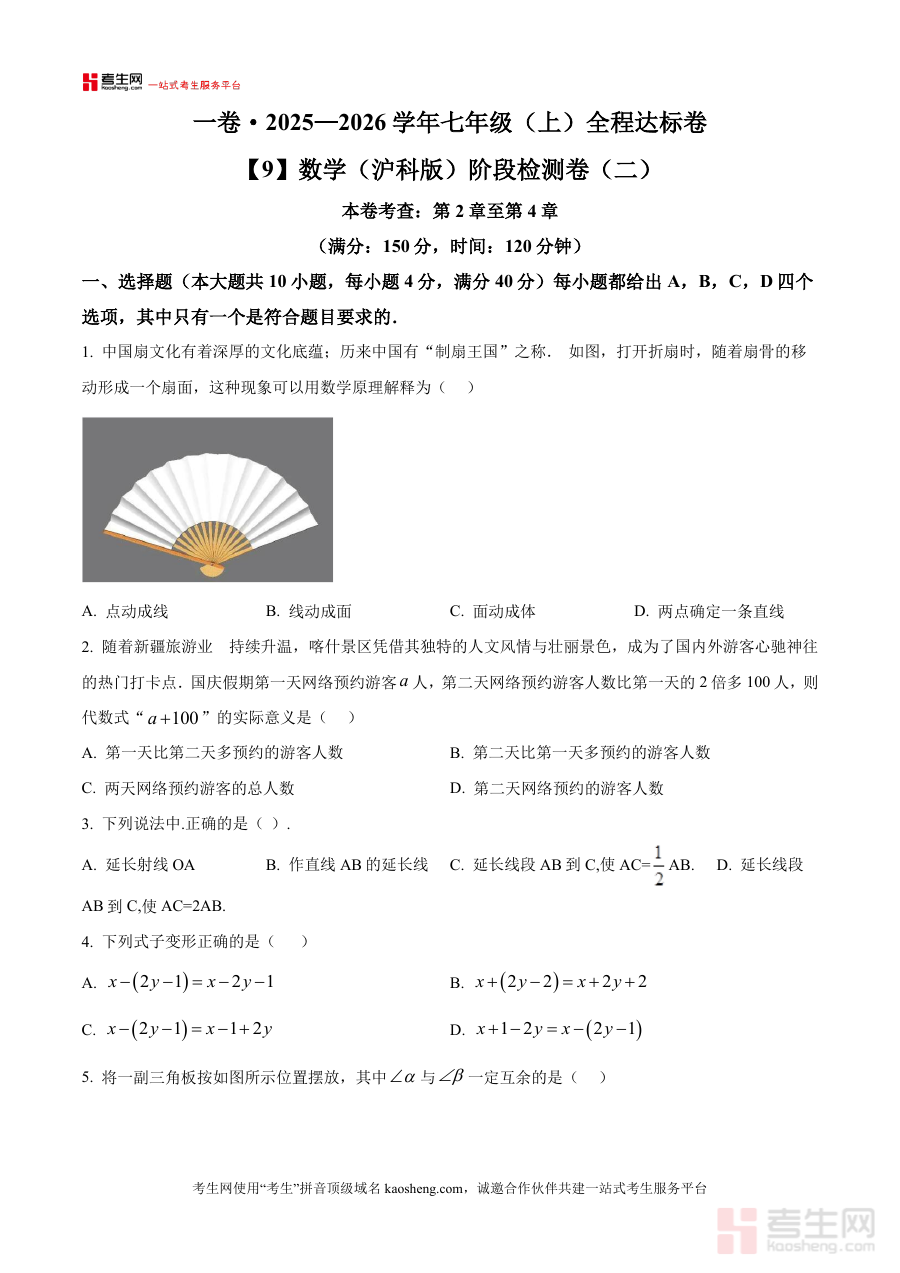 本资料的适用人群主要包括安徽省合肥市蜀山区2025-2026学年上学期在读的七年级学生、该年级数学任课教师及关注孩子数学学习的家长。通过使用该原卷版试卷进行阶段检测或备考规划,学生能更有针对性地巩固知识、提升能力;教师可依据检测结果调整教学策略以适配学生需求;家长则能更精准地辅助孩子制定学习计划,共同推动数学学科阶段性学习目标的有效达成。