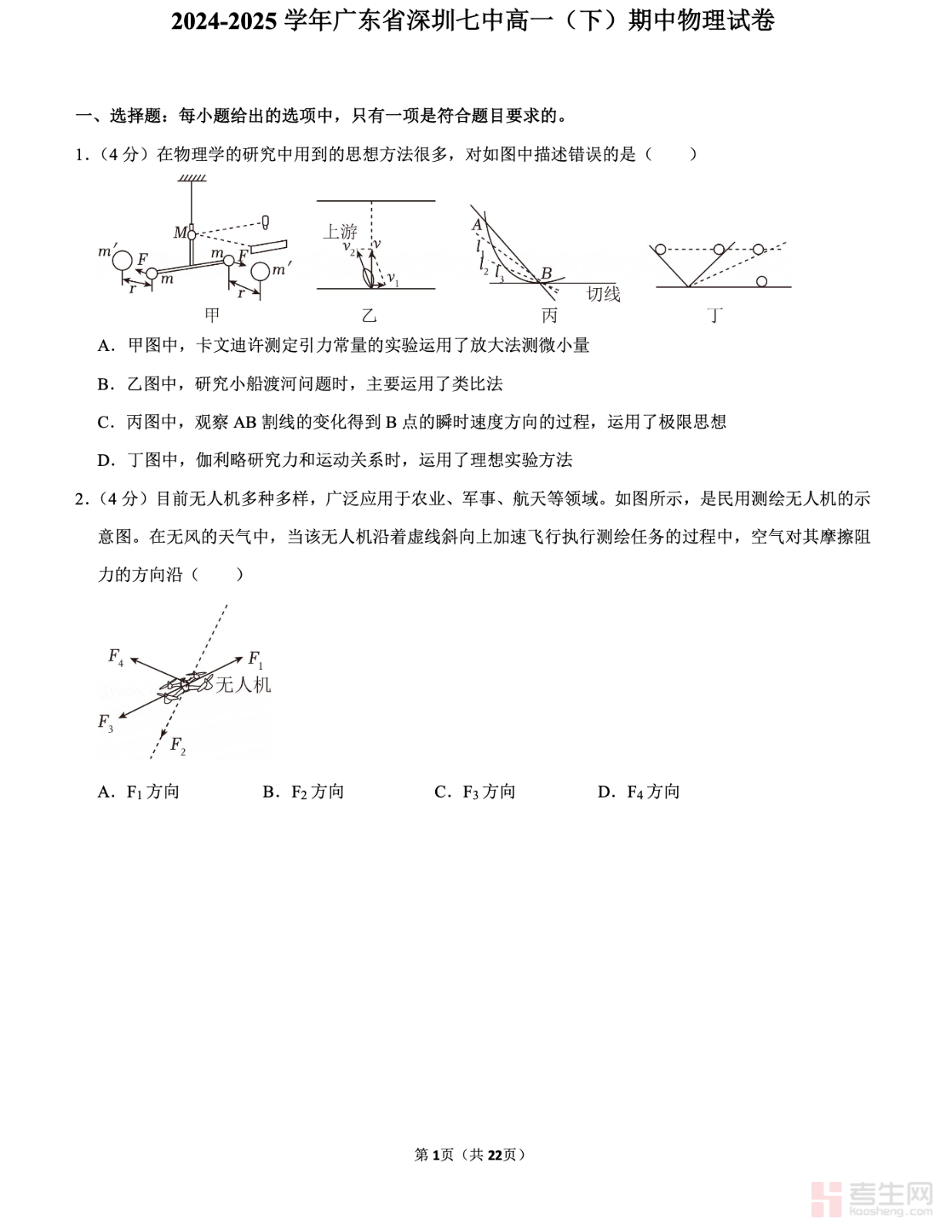 2024-2025 学年广东省深圳七中高一(下)期中物理试卷严格依据该校教学进度与高一物理必修第二册考情命制,精准覆盖曲线运动、平抛运动、圆周运动、万有引力与航天核心考点,全面考查运动的合成与分解、向心力分析、天体质量计算、卫星运行规律等重点内容。试卷包含单选、多选、实验、计算四大题型,结构完整、梯度合理,贴合深圳七中命题风格与难度,配套详细解析,点明解题思路、易错点与答题规范,适合深圳七中及同层次高一学生期中自测、考点查漏、考前冲刺,快速提升物理应试能力与学科素养。请添加微信 18617049513 进专属群,获取更多免费资源!
