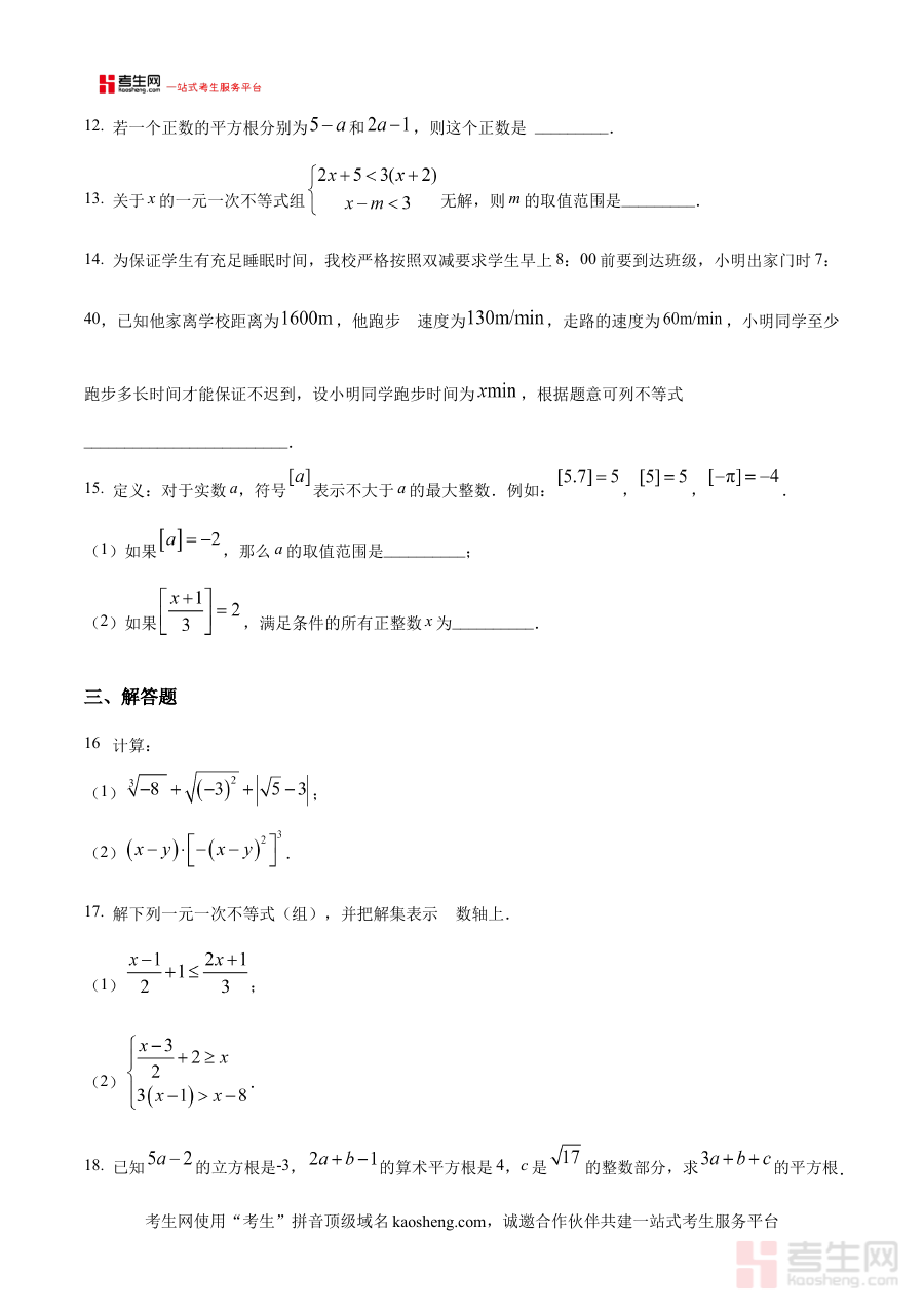 这份资料可作为七年级学生进行学情诊断的有效工具,帮助学生在学期初期及时了解自身对数学知识的掌握程度,发现学习中的薄弱环节;同时也能为教师提供阶段教学效果的参考依据,辅助教师调整后续教学计划与备考策略;此外,它还可用于学生的自主备考规划,让学生通过模拟实际考试场景,提前熟悉考试流程与要求,为正式考试做好准备。