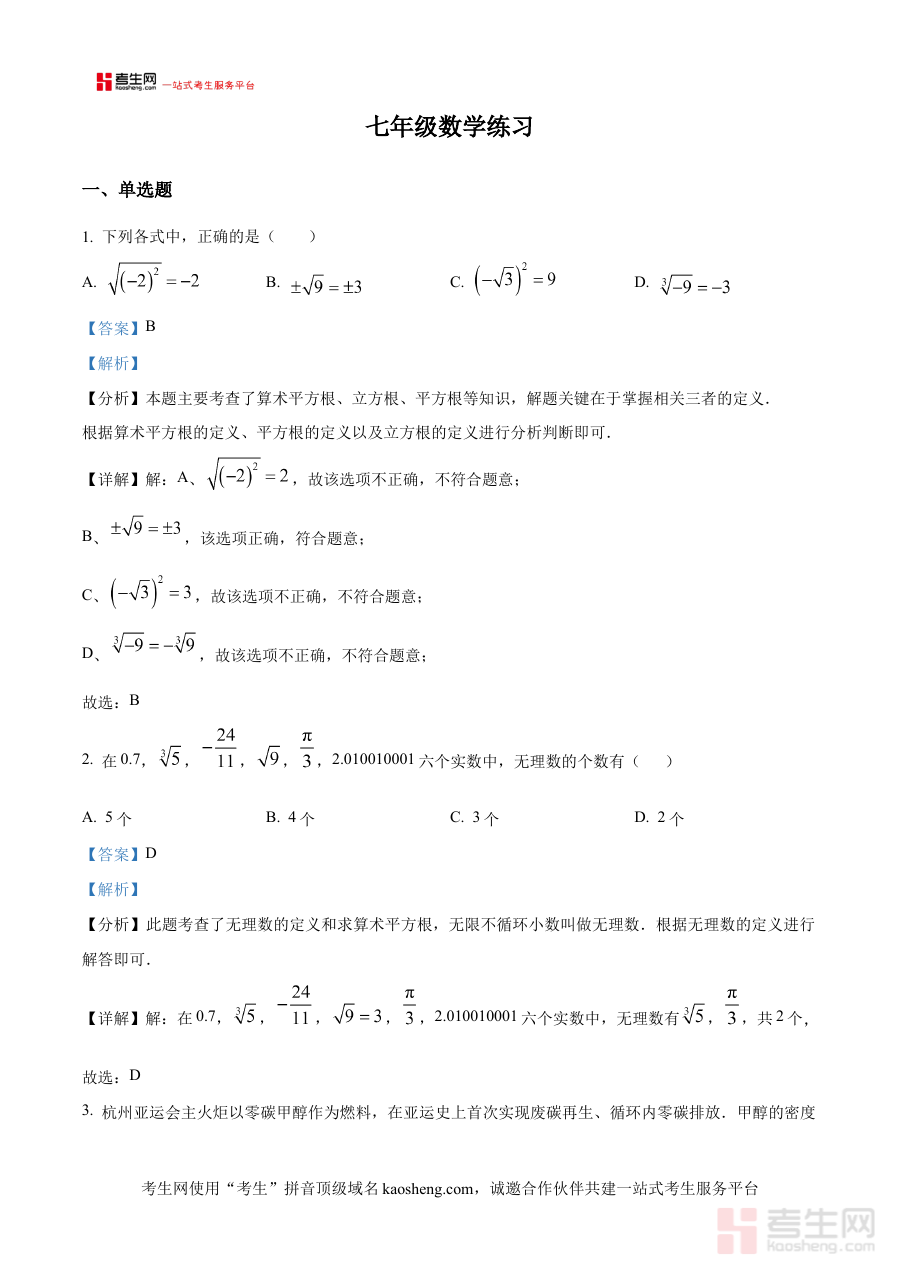 《精品解析:安徽省合肥市第三十八中学2024-2025学年下学期七年级第一次月考数学试卷(解析版)》是针对安徽省合肥市第三十八中学特定学年学期的七年级首次月度数学考试所编制的专业解析类备考资料。该资料紧密贴合该校该阶段的数学教学进度与考试命题方向,能够为使用者提供与实际考试场景高度匹配的复习参考依据,助力使用者精准把握阶段性考试的核心要求与考查重点。