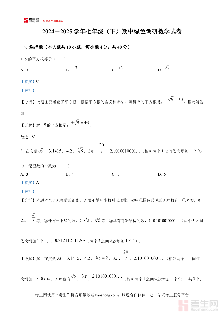 《精品解析:安徽省合肥市第四十五中学2024—2025学年七年级下学期期中数学试卷 (解析版)》是针对安徽省合肥市第四十五中学特定学年学期的期中数学考试编制的专业备考资料,其核心定位是服务该学校七年级学生在期中阶段的数学学习巩固与备考准备。该资料依托学校期中检测的官方命题背景,聚焦七年级下学期数学学科的阶段性考查需求,为使用者提供与学校期中考试直接相关的解析支持,帮助学生对接学校教学进度与考试要求,是贴合该校教学实际的针对性备考资源。