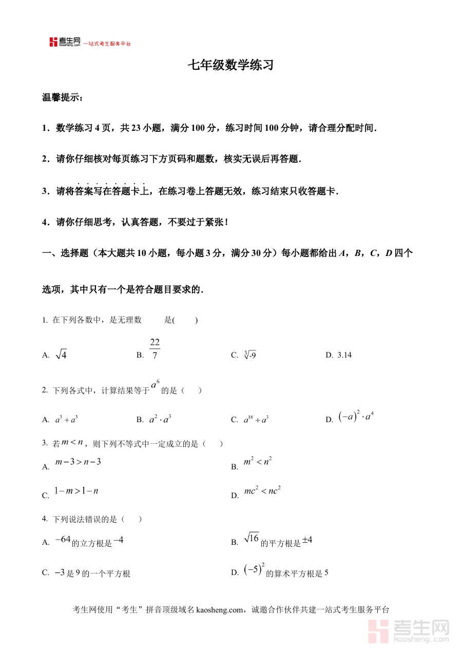 《精品解析:安徽省合肥市蜀山区五十中学西校2024-2025学年七年级下学期4月期中数学试题(原卷版)》是安徽省合肥市蜀山区五十中学西校针对2024-2025学年七年级下学期数学学科开展期中检测的原卷资料。该资料对应七年级下学期4月的期中测试节点,精准贴合该校本学年此阶段数学教学的阶段性目标与考试方向,为相关师生提供了与本校教学实际高度匹配的备考素材支撑。