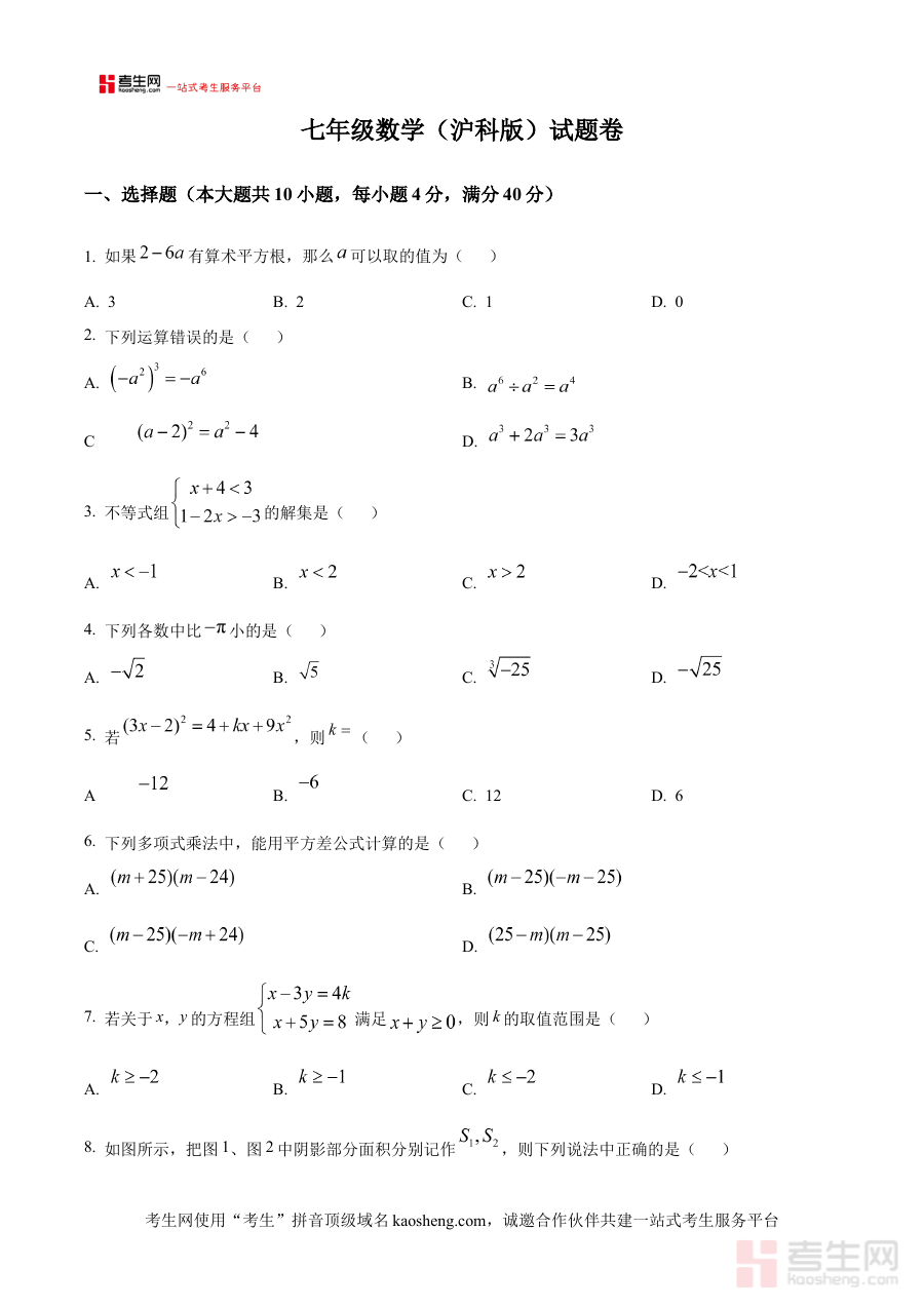《精品解析:安徽省合肥新站高新技术产业开发区2024-2025学年下学期七年级数学期中试卷(原卷版)》是针对安徽省合肥新站高新技术产业开发区特定区域、特定学年段的数学期中检测资料,聚焦2024-2025学年下学期七年级学生的数学学习阶段性考查需求。作为该区域官方期中试卷的原卷呈现形式,它准确反映了当地七年级数学教学的阶段性目标与考查方向,为相关师生提供了与实际考试完全一致的试卷内容载体,是贴合区域教学实际的重要备考资源。