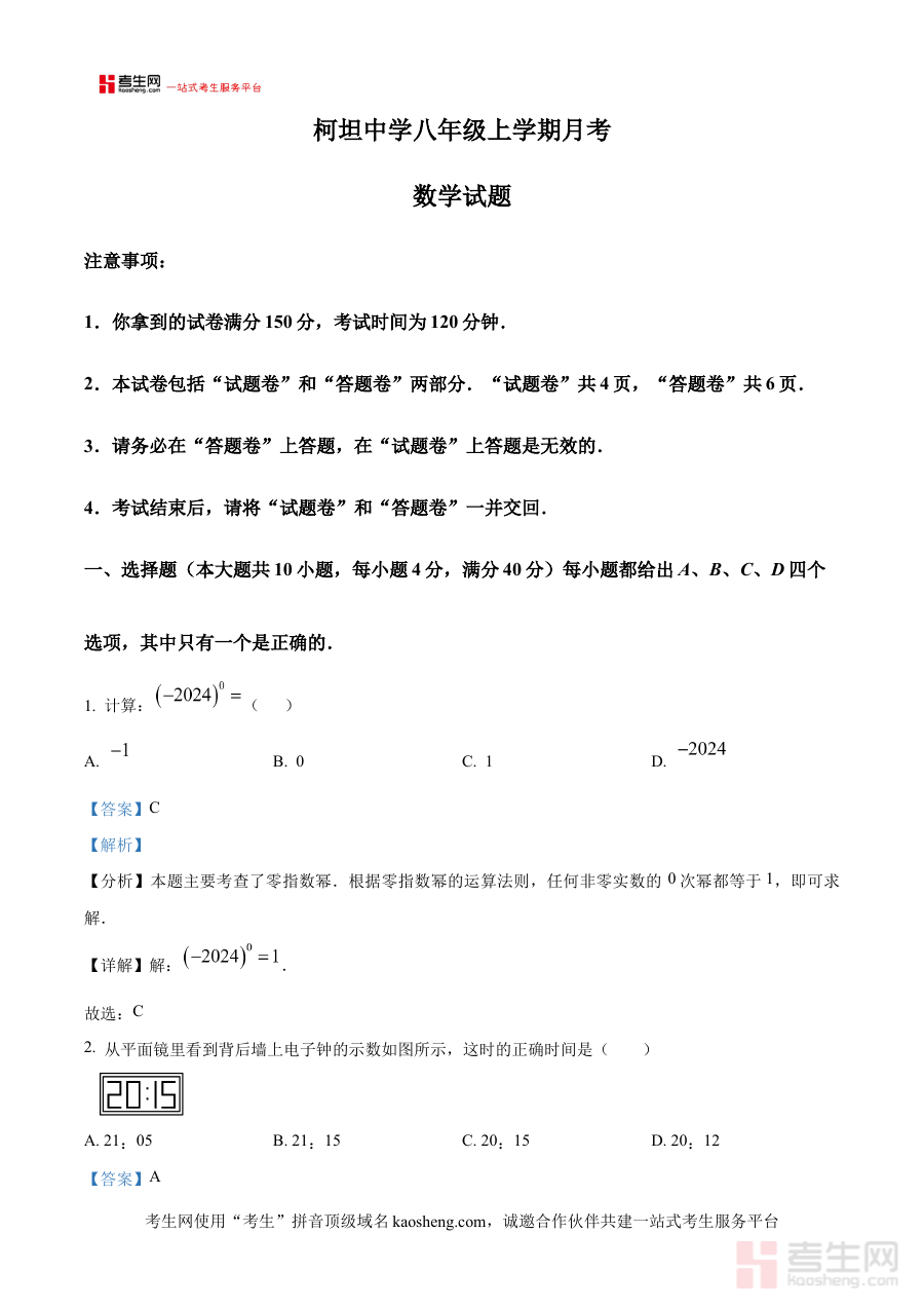 《精品解析:安徽省合肥市庐江县柯坦初级中学2024-2025学年八年级上学期12月月考数学试题(解析版)》是针对安徽省合肥市庐江县柯坦初级中学特定学年与学期的阶段性数学考试配套资料,聚焦八年级上学期12月月考这一关键时间节点的数学学科考查内容。作为该次月考的解析版本,它紧密贴合该校该阶段的教学进度与考试要求,为使用者提供与实际考试直接相关的参考依据,是了解该次月考命题特点与考查方向的重要资源。