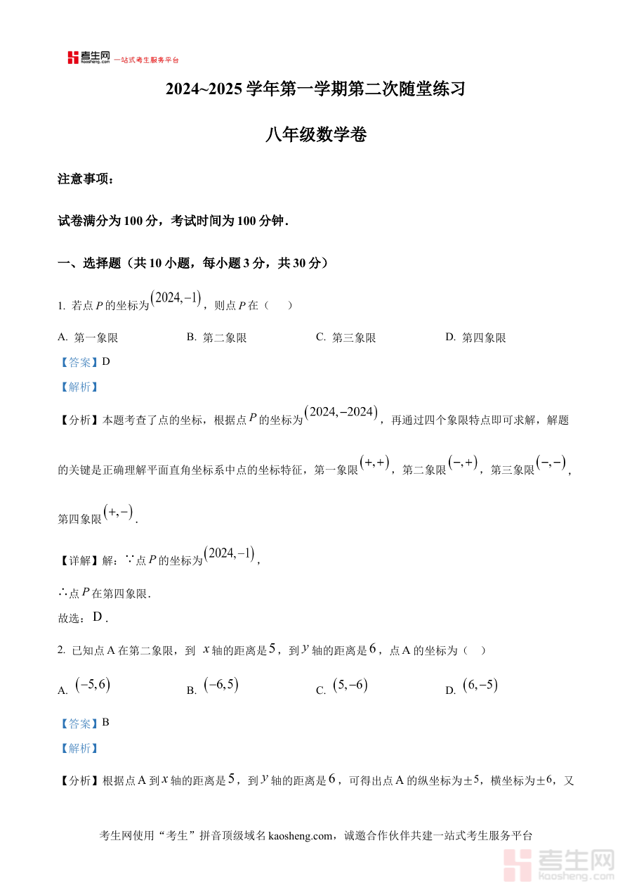 《精品解析:安徽省合肥市高新区中国科大附中高新中学2024—2025上学期10月月考八年级数学试卷(解析版)》是针对2024至2025学年上学期安徽省合肥市高新区中国科大附中高新中学八年级学生10月月考的数学试卷解析类资料。该资料聚焦于该校八年级数学学科的阶段性考试内容,为使用者提供与本次月考直接相关的解析支持,属于贴合该校教学进度与考试要求的备考辅助材料,能够帮助使用者快速对接本次月考的考查背景与核心目标。
