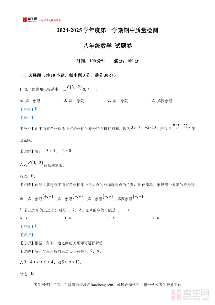 《精品解析:安徽省合肥市包河区大联考2024-2025学年八年级上学期11月期中考试数学试题(解析版)》是针对安徽省合肥市包河区区域内2024-2025学年八年级上学期11月期中考试数学科目的专业备考资料。该考试作为八年级上学期中期的重要阶段性检测,旨在考查学生对前半学期数学知识的掌握程度与应用能力,而这份解析版资料则为使用者提供了深入理解考试内容与要求的途径,帮助他们准确把握考试的命题思路和考查方向,是应对此次期中考试的重要辅助材料,能为后续的学习和教学提供清晰的参考依据。