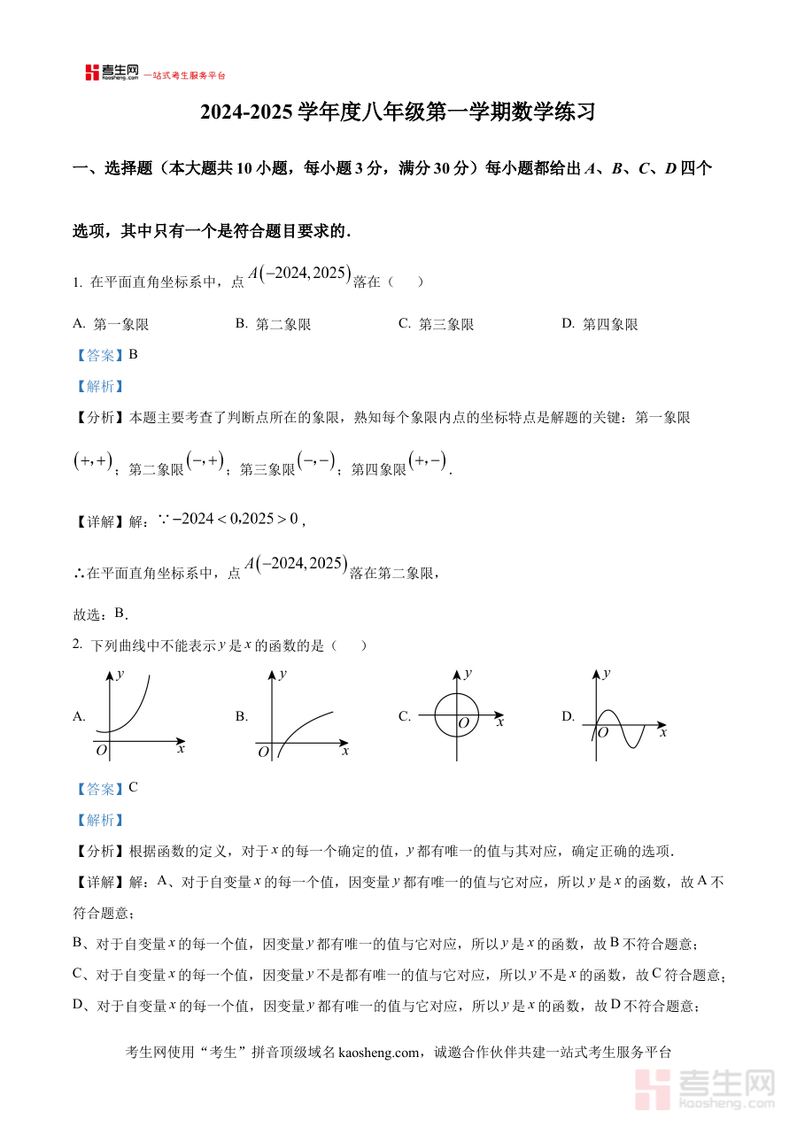 此资料可用于学情诊断环节,帮助使用者通过对试题解析的深入学习,清晰识别自身在本学期前半段数学知识掌握中的优势领域与薄弱环节;也可服务于备考规划工作,为使用者调整后续学习重点、制定个性化且高效的复习方案提供客观依据;同时还能作为阶段检测效果的验证工具,辅助使用者评估自身学习成果是否达到期中阶段的预期目标。