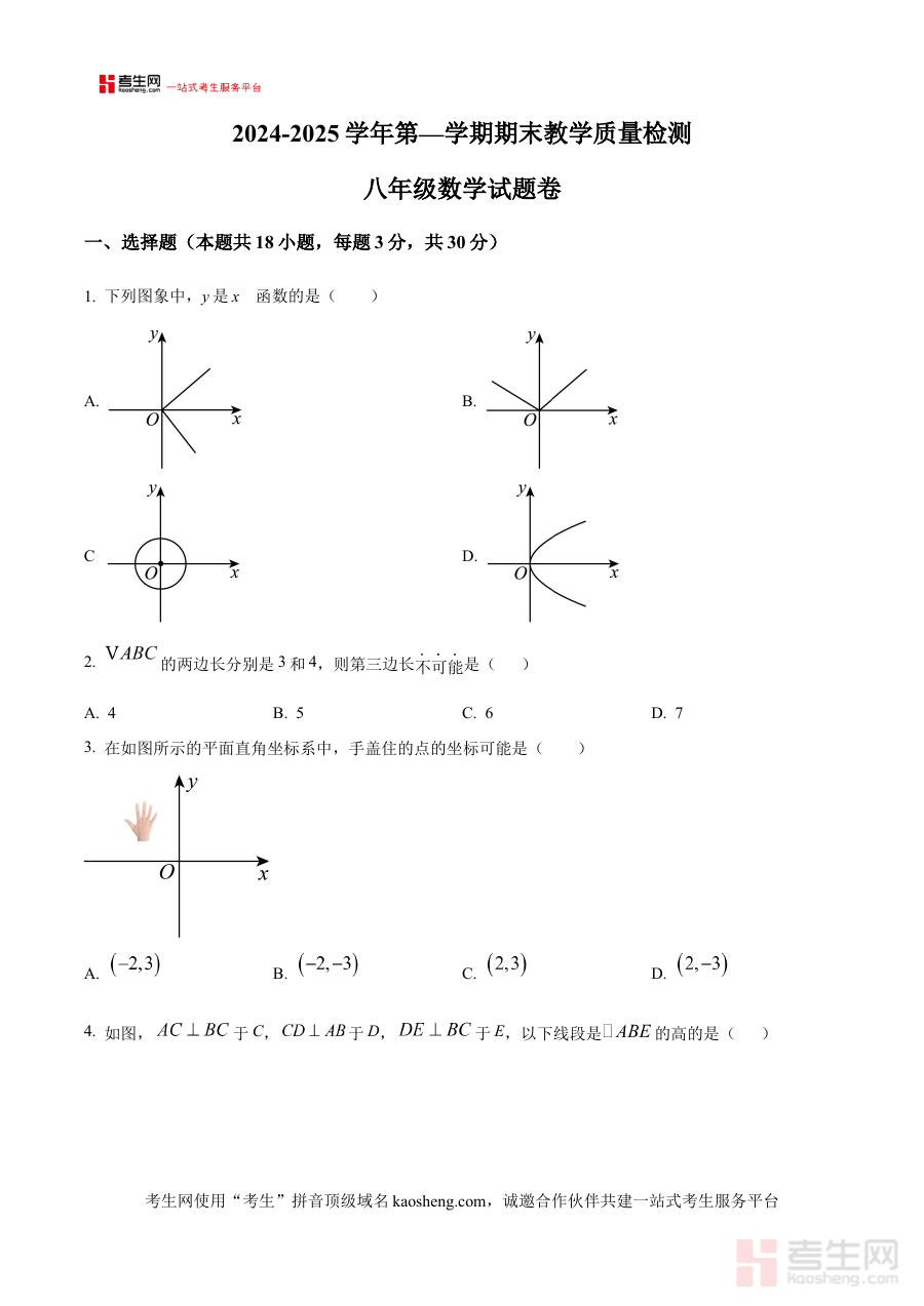 《精品解析:安徽省合肥市包河区2024—2025学年上学期八年级期末数学试卷(原卷版)》是针对安徽省合肥市包河区特定学年学期的八年级数学期末测试的备考资料,其年份范围明确为2024至2025学年上学期,地区限定于合肥市包河区,考试类型为八年级数学期末试卷的原卷版本。作为区域内期末测试的配套资料,它能够为使用者提供该地区期末数学考试的原始试卷形态,帮助使用者直观了解当地期末测试的整体框架与呈现形式。