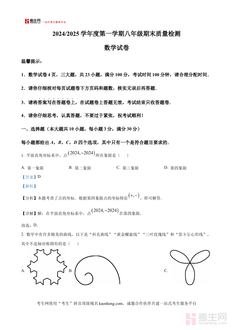 《精品解析:安徽省合肥市蜀山区2024--2025学年上学期八年级数学期末试卷 (解析版)》是聚焦安徽省合肥市蜀山区2024至2025学年上学期八年级数学期末测评场景的专业备考资料,精准匹配该区域该学段学生期末考核的核心需求,为使用者提供与本地期末测评体系高度契合的资源支持,帮助其提前熟悉期末测评的整体框架与考查方向。