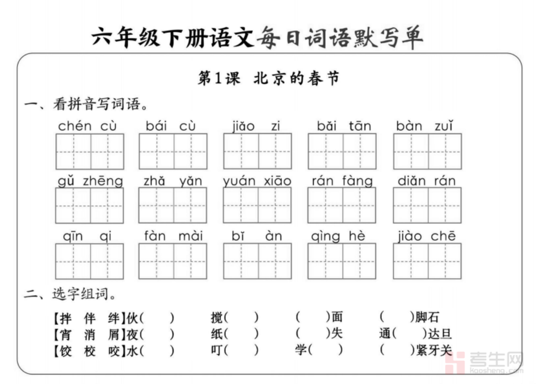 小学语文 1-8 单元高频考点默写单(六年级下)紧扣部编版六年级下册语文教材及单元教学重点,全面梳理课文重点句段、必背古诗词、日积月累、文言词句、中心句、过渡句等高频默写内容,按 1-8 单元系统整理,考点清晰、重点突出,针对性强。每份默写单紧扣期末考点、单元考点、常考易错字,帮助学生精准巩固必背内容,强化字词书写、语句记忆、课文理解,有效减少默写失分。适合六年级学生单元复习、课前预习、期中期末备考、日常巩固使用,快速提升语文基础与应试能力。请添加微信 18617049513 进专属群,获取更多免费资源!
