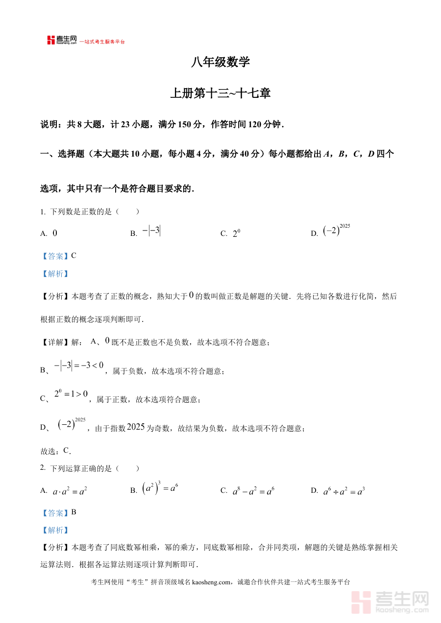 《精品解析:安徽省合肥市庐江县部分学校2025-2026学年八年级上学期12月月考数学试题(解析版)》是针对安徽省合肥市庐江县特定区域、特定学年学期的八年级数学月考所开发的专业备考资料。它紧密贴合该区域学校八年级上学期12月月考的考试场景,依托本地教学进度与考试要求设计,为相关学习者提供了与实际考试高度匹配的数学学习参考资源,有助于使用者快速对接本地考试的核心方向与重点内容。