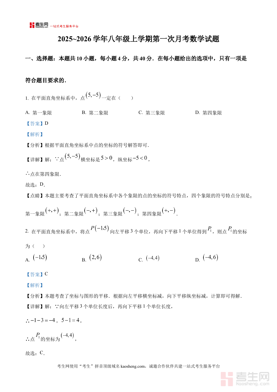 这份解析版资料具有明确的实用价值,可用于学生开展自我学情诊断,通过对试题解析的系统学习,清晰识别自身在第一次月考涉及的数学知识模块中的掌握程度与薄弱环节;也可作为教师进行教学反馈与备考规划的重要参考工具,辅助教师调整后续教学计划与针对性辅导策略;同时还能为家长提供了解孩子阶段性数学学习状况的有效途径,便于家校协同推进学生的数学学习进程。
