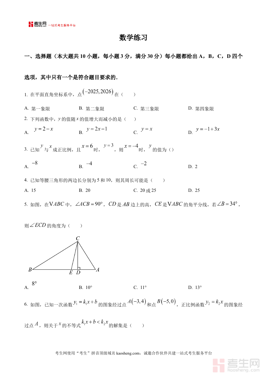 本资料适用于安徽省合肥市五十中学西校2025-2026学年上学期在读的八年级学生,可用于考前模拟练习熟悉考试流程与题型设置,也可作为考后复盘的核心素材;同时适合该年级数学教师用于教学评估、试题研究及学情分析;此外家长也可利用其辅助孩子进行阶段性总结与备考规划。合理使用原卷能提升备考效率与针对性,确保学习方向契合学校要求,助力学生取得理想成绩。