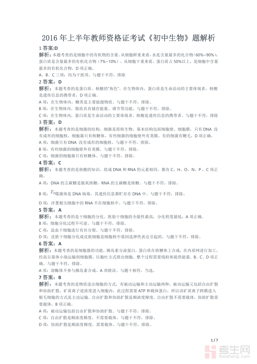 《2016年上半年教师资格证考试《初中生物》题(解析)》是2016年上半年全国教师资格证初中生物学科考试对应的备考资料。该资料以当次考试的真题为核心内容载体,搭配专业系统的解析部分,能够帮助考生熟悉教师资格证初中生物考试的整体框架与考查方向,为考生构建清晰的备考思路提供参考依据,是初中生物教资备考过程中具有实用价值的学习资源之一。