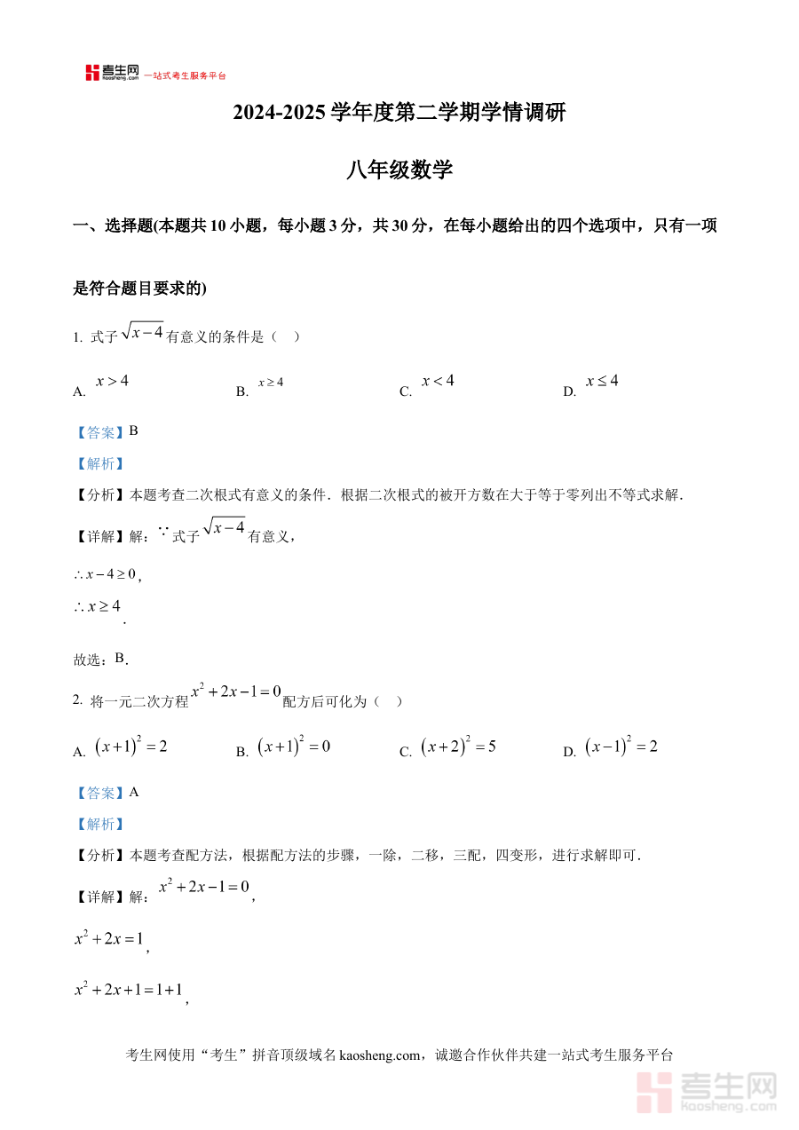 《精品解析:安徽省合肥市蜀山区2024-2025学年八年级下学期期末数学试题(解析版)》是针对安徽省合肥市蜀山区特定学年学段的数学期末考试打造的配套备考资料,明确覆盖了2024-2025学年八年级下学期的时间范围,聚焦蜀山区本地的期末数学考试需求,整合了试题与解析两大核心模块,为使用者提供贴合本地教学评价标准的针对性资源支撑,帮助使用者快速对接该区域期末数学考试的命题方向与考查重点。