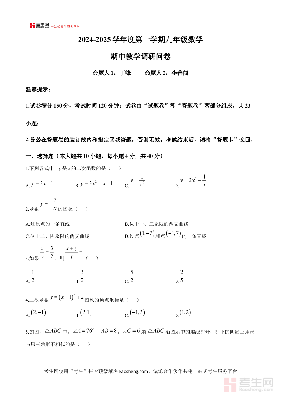 《安徽省合肥市行知中学2024—2025学年上学期期中绿色评价九年级数学试题》是针对安徽省合肥市行知中学2024至2025学年第一学期期中阶段开展的绿色评价考试所设计的数学学科试题资料。该资料紧密贴合该校九年级数学学科的期中教学评价需求,作为对应考试的核心备考资料,能够为相关使用者提供与学校期中绿色评价考试直接相关的练习与参考依据,帮助使用者提前熟悉考试场景与评价方向。