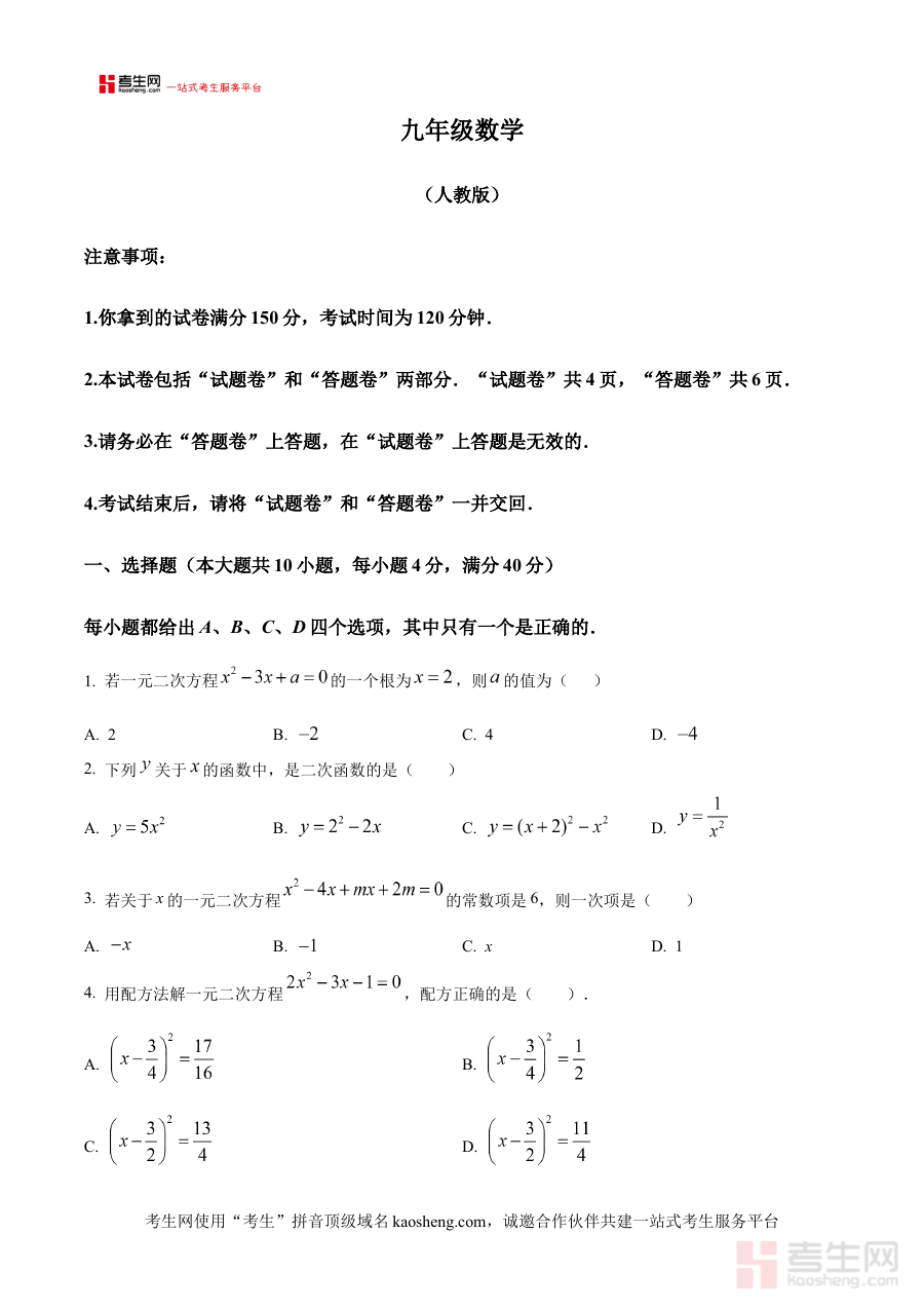 该资料的核心用途在于辅助使用者进行阶段性学习情况的诊断与评估,帮助使用者及时了解自身在九年级上学期10月阶段数学学习中的优势与不足。通过使用该原卷版试题,使用者可以模拟真实考试场景,检验自身对近期所学数学知识的掌握程度,为后续的备考规划提供数据支持与方向指引,同时也能帮助教师或家长更精准地把握学生的学习状态,调整教学或辅导策略。