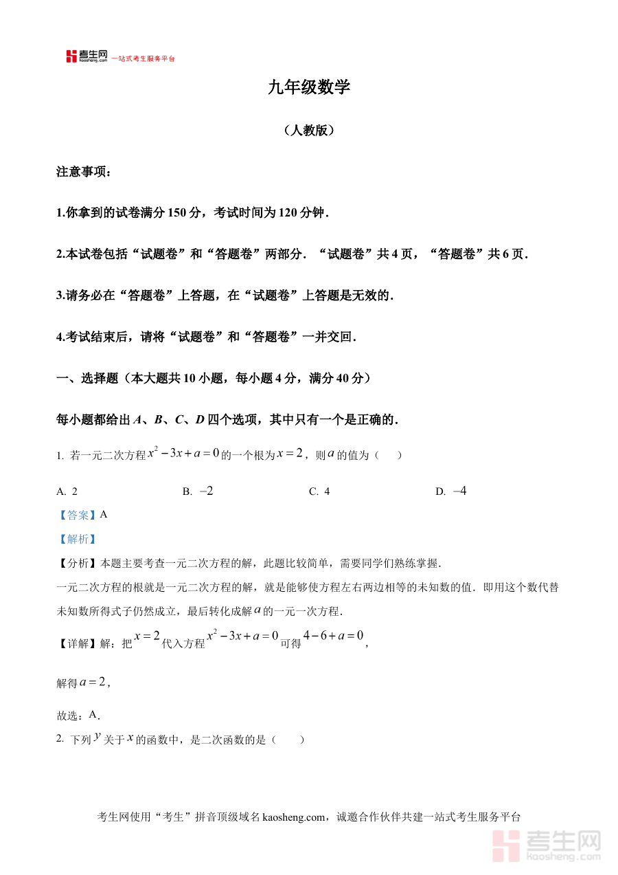 《精品解析:安徽省合肥市庐江县柯坦初级中学2024-2025学年九年级上学期10月月考数学试题(解析版)》是针对安徽省合肥市庐江县柯坦初级中学特定学年学期的数学月考配套解析资料。它聚焦九年级上学期10月这一关键时间节点,贴合该校数学学科阶段性教学进度与考试要求,为相关师生提供了与本次月考直接对应的系统性解析支持,是该阶段数学学科备考的重要辅助资源。