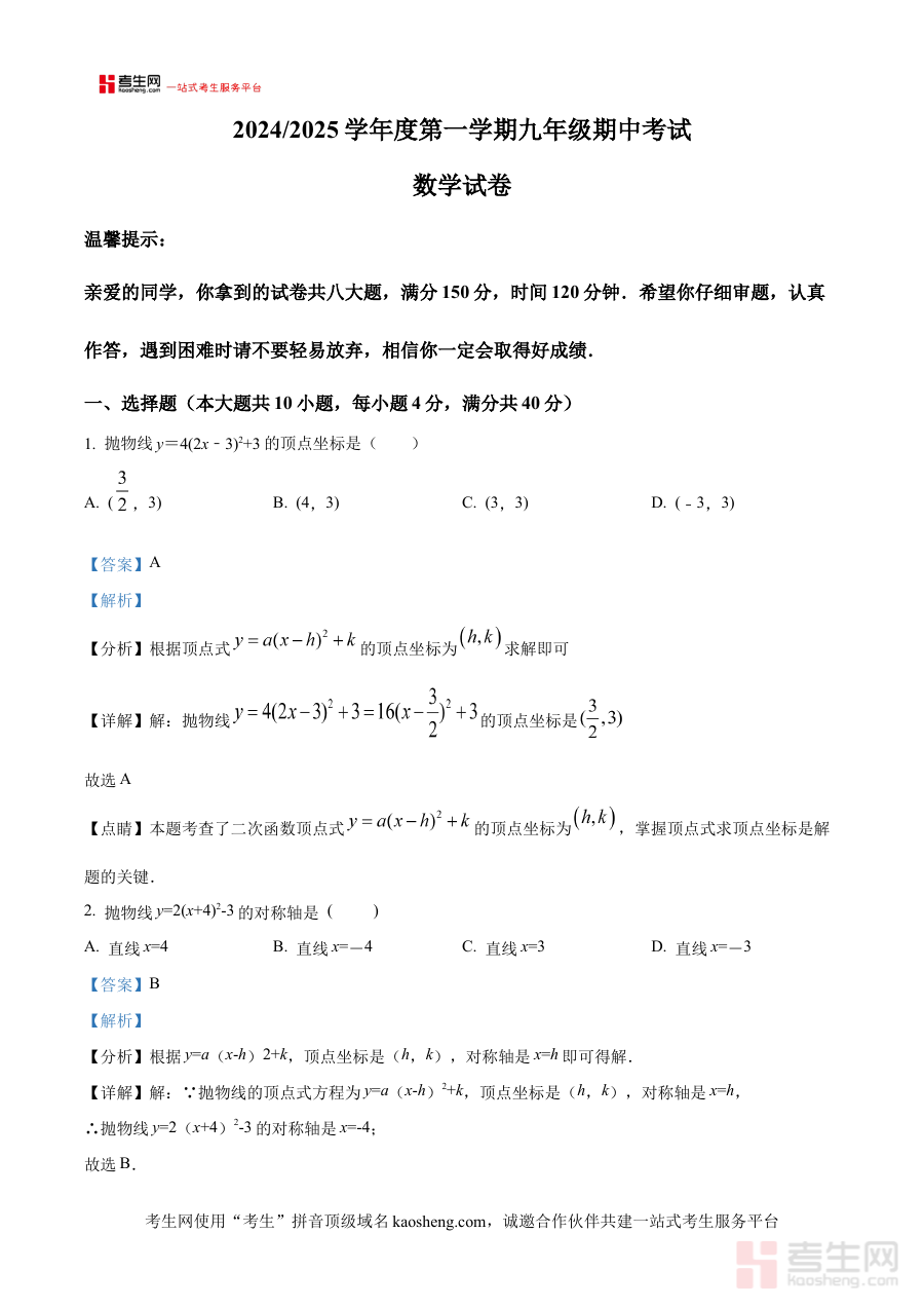 本资料主要适用于安徽省合肥市第五十五中学2024-2025学年上学期的九年级学生,以及该学校从事九年级数学教学工作的教师群体,同时也可作为关注初中数学期中阶段教学与备考的教育研究者或家长的参考材料。它通过解析版形式强化了期中阶段检测的实用价值,不仅能帮助学生巩固所学知识、提升应试能力,还能为教师的教学优化和备考规划提供有力支撑,促进教与学环节的协同提升。