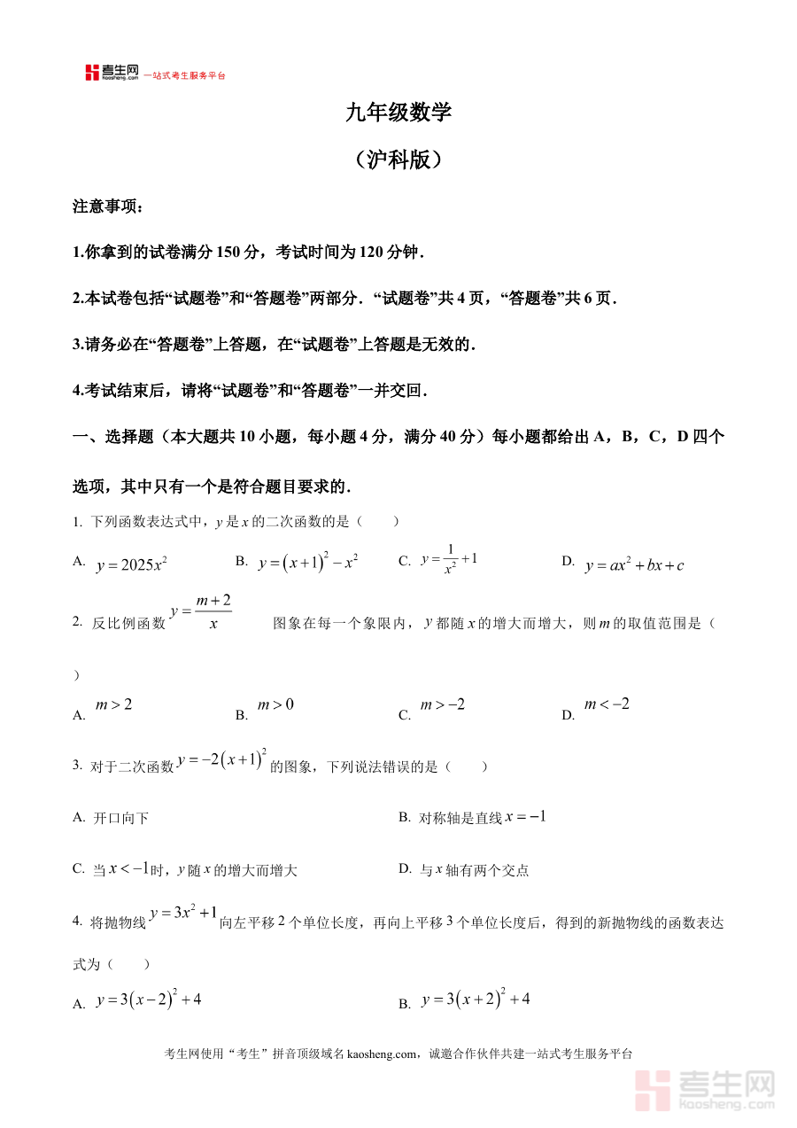 该练习卷主要适用于安徽省合肥市第三十八中学2025-2026学年九年级的学生,以及担任该学段数学教学任务的教师;同时也可为关注学生数学学习进展的家长提供参考,帮助家长更好地了解孩子在学校阶段性考试中的表现。其作为第一次月考的原卷版资料,对于学生适应月考节奏、提升应试能力具有重要意义,也能为教师优化教学策略、强化备考指导提供实际支持,助力师生共同提升阶段性学习效果。