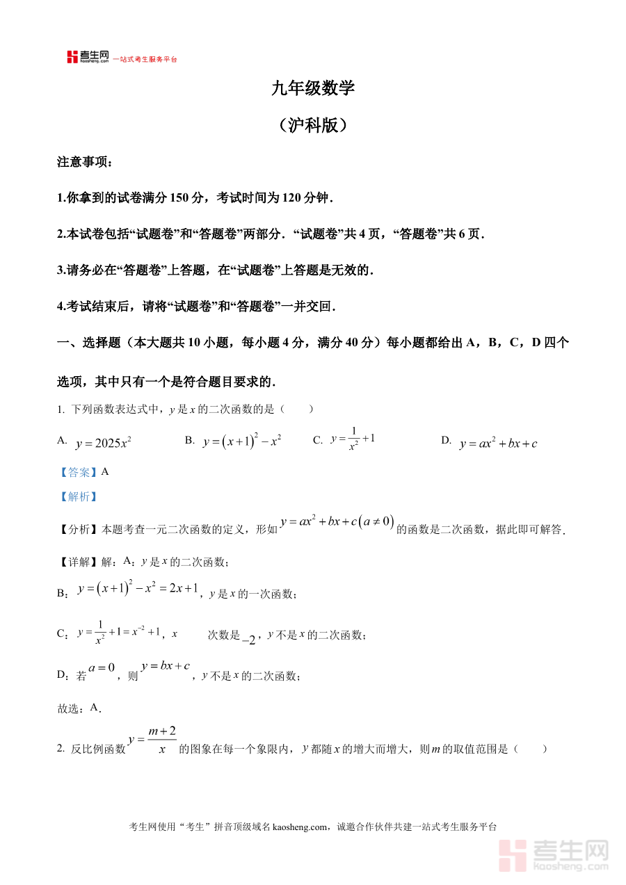 《精品解析:安徽省合肥市三十八中学2025-2026学年九年级上学期第一次月考数学练习卷(解析版)》是针对安徽省合肥市第三十八中学2025-2026学年九年级学生上学期第一次月考设计的数学备考资料。该资料聚焦九年级上学期初期的数学学习阶段特点,以该校月考为核心应用场景,为使用者提供了与本校考试要求相匹配的练习资源及详细解析支持,助力师生更好地对接本次月考的考查方向与评价标准。
