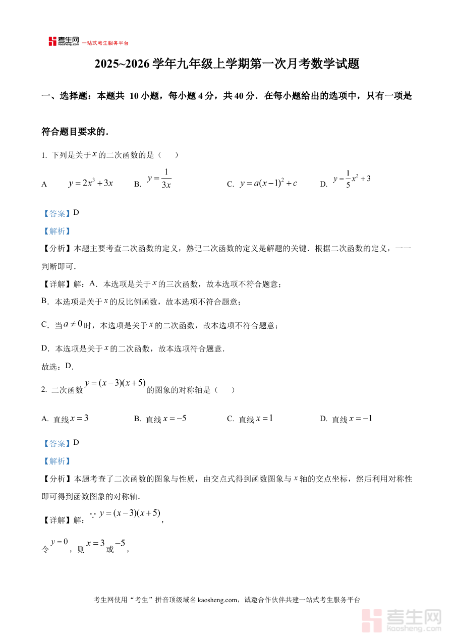 该资料的适用人群主要为合肥市第四十五中学2025~2026学年的九年级学生,他们可借助此解析版资料巩固所学知识、提升解题能力,为后续学习积累经验;同地区其他学校的九年级学生也可将其作为参考资料,了解相似阶段的考查重点;教师与家长则能通过该资料更精准地开展辅导与学习规划工作,充分发挥阶段检测在学习进程中的导向作用,为学生的长期数学学习奠定坚实基础。