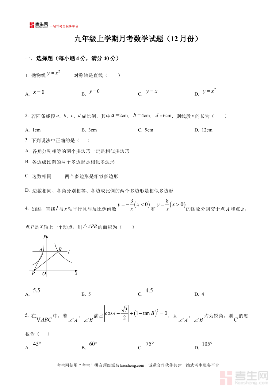 《精品解析:安徽省合肥市第四十五中学芙蓉分校2025-2026学年九年级上学期12月月考数学试题(原卷版)》是针对安徽省合肥市第四十五中学芙蓉分校特定学年和年级的数学月考原卷资料,明确覆盖2025-2026学年九年级上学期12月的考试场景。作为原卷版资料,它完整保留了该校本次月考数学试题的原貌,包括试题呈现形式、考查模块分布等校属考试特征,能让学生直观感受本校月考真实氛围,避免因不熟悉考试形式影响发挥,为该阶段学生提供最贴近实际考试场景的备考素材。