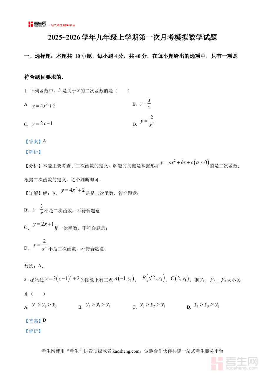 《精品解析:安徽省合肥市第四十五中学菱湖分校2025~2026学年九年级上学期第一次月考模拟数学试题(解析版)》是针对安徽省合肥市第四十五中学菱湖分校2025至2026学年九年级上学期第一次月考设计的专项备考资料。该资料紧密贴合该校该学年九年级上学期第一次月考的时间节点与考试定位,为学生提供与校考实际高度匹配的模拟训练及解析支持。作为解析版资料,它不仅呈现试题内容本身,更通过系统解析帮助使用者把握试题背后的考查逻辑与核心要求,为后续备考奠定基础。