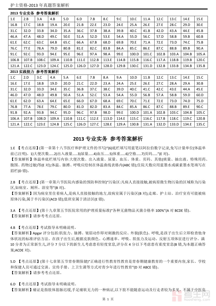《2013护士执业考试答案及解析》是针对2013年度全国护士执业资格考试的配套备考资料,紧密围绕该年度考试的命题范围与考核要求,为考生提供对应考试的答案参考及深度解析服务。它以当年护士执业考试的核心考点为依托,旨在帮助考生准确把握答题逻辑与得分要点,厘清知识应用思路,是考生备考过程中重要的辅助工具之一。