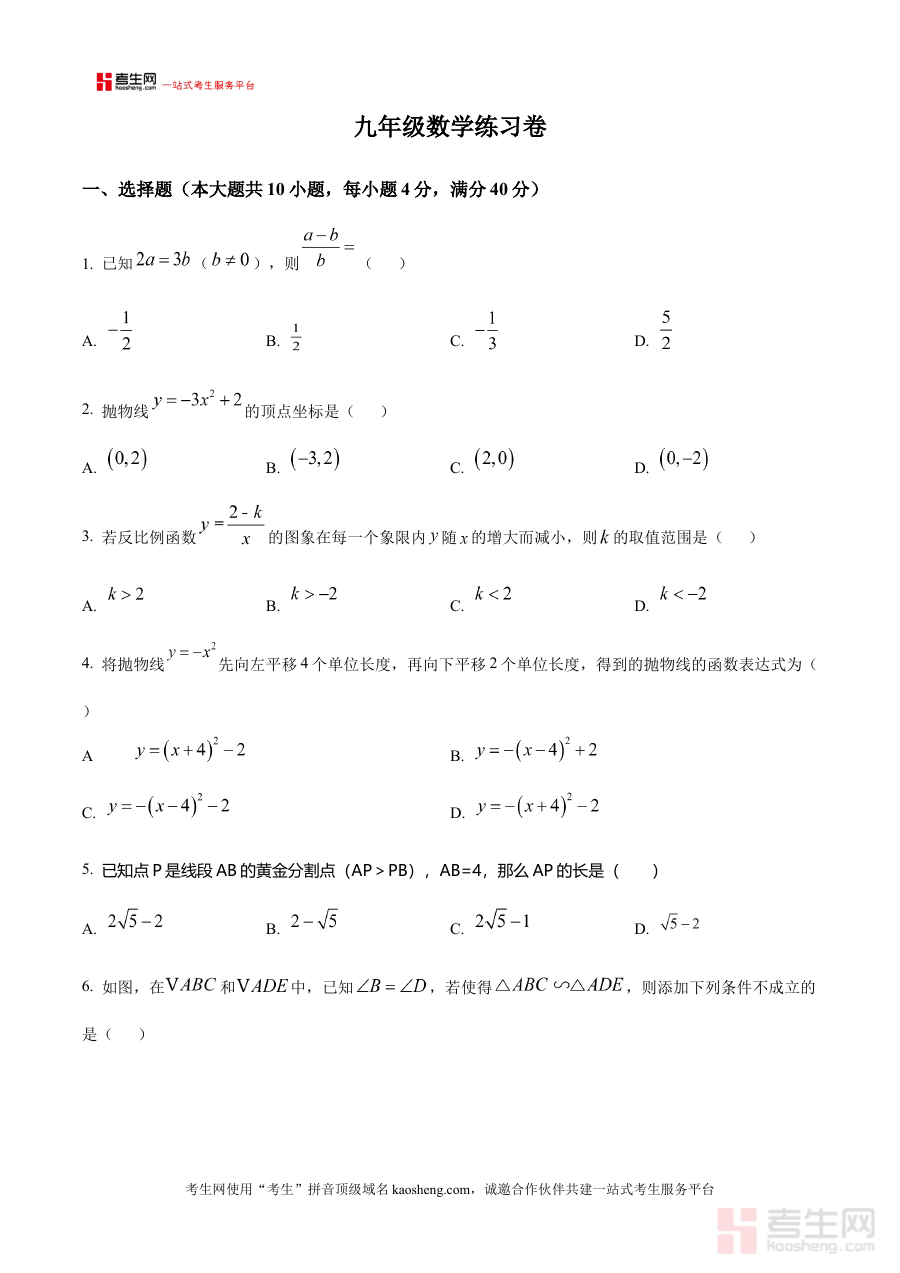 《精品解析:安徽省合肥市第四十五中学森林城分校2025-2026学年上学期九年级数学期中试卷(原卷版)》是针对安徽省合肥市第四十五中学森林城分校特定学年段的数学学科期中检测资料,聚焦2025-2026学年上学期九年级学生的阶段性学习成果评估需求,作为该分校期中检测的原卷版本,为相关群体提供了贴合该校教学进度与要求的备考基础材料,能够直接反映该校九年级数学期中检测的命题方向与考查范围框架,是衔接日常教学与期中评估的重要载体。