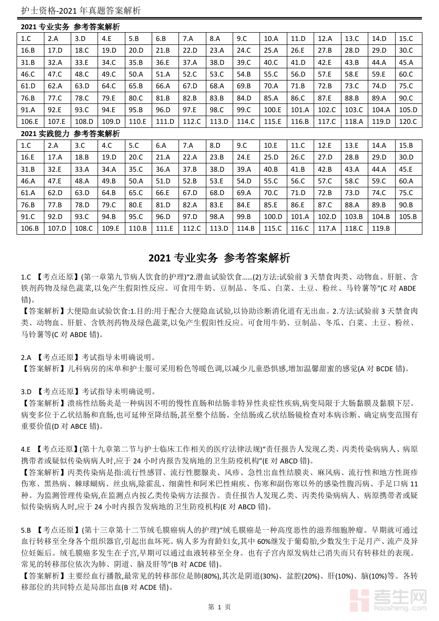 该资料适用于所有备考2021护士执业资格考试的考生群体尤其是处于强化复习阶段或需要进行模拟检测后复盘总结的考生通过参考该资料的答案及解析考生能够更高效地调整备考策略提升复习的针对性和有效性减少无效学习时间同时也能帮助考生建立更清晰的知识框架增强对考试内容的理解与应用能力为顺利通过考试奠定坚实的基础