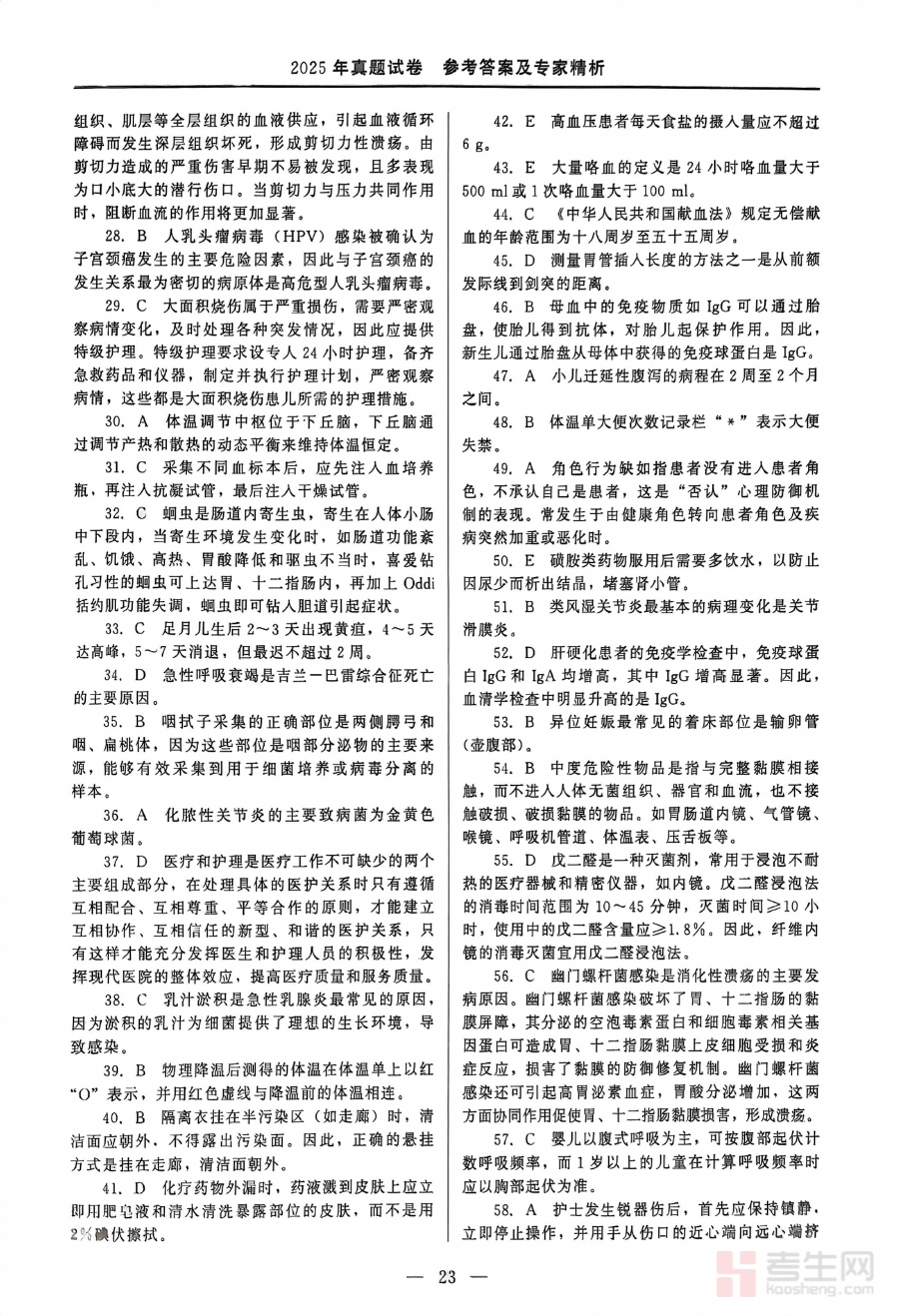 《2025年护士资格考试答案解析(新更)》是针对2025年度全国护士资格考试推出的配套备考资料。该资料结合最新考试相关动态进行了更新调整,旨在为考生提供对应考试的答案参考与深度解析支持,帮助考生更好地理解考试内容与答题要求,是备考过程中重要的辅助工具之一。