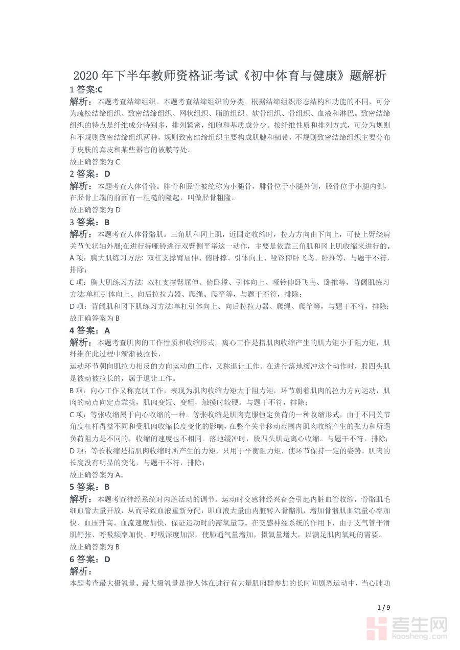 《2020年下半年教师资格证考试《初中体育与健康》题解析》是2020年下半年针对初中体育与健康学科教师资格证考试打造的配套备考资料,聚焦该次考试的相关题目内容,旨在为考生提供专业的题目解析支持。它紧密贴合2020年下半年的考试时间节点与学段学科要求,帮助考生精准对接考试的考查方向,为备考过程提供针对性的辅助资源。