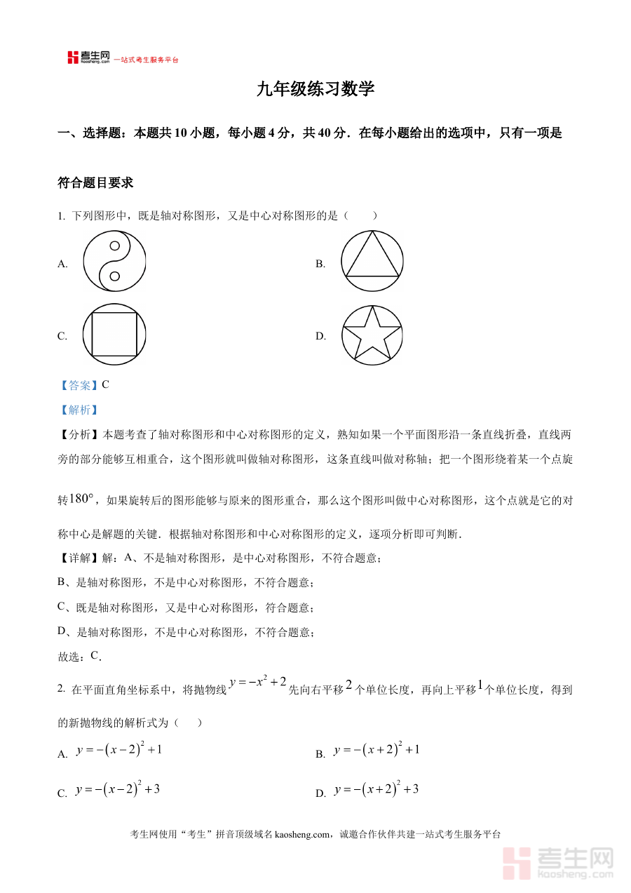该资料具有多方面的实用价值,可作为九年级学生进行学情诊断的工具,帮助学生快速识别自身在数学学习中的薄弱环节;同时也能为教师提供阶段教学效果评估的重要依据,辅助教师调整后续的教学策略与复习计划;此外,对于家长而言,它也能成为了解孩子数学学习状况的有效途径,从而更好地配合学校和孩子开展针对性的提升工作。