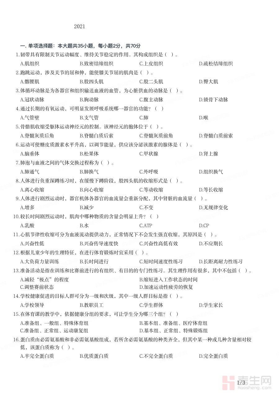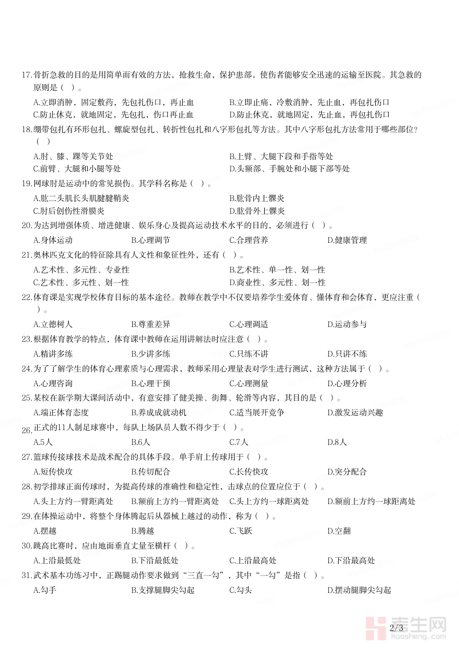 《2021年下半年教师资格证考试《初中体育与健康》题》是针对2021年下半年全国教师资格证考试初中阶段体育与健康学科的备考资料,它依据该次考试的官方大纲要求编制,紧密贴合学科命题方向与考查重点,为考生提供了与实际考试场景高度匹配的练习载体。通过使用这份资料,考生能够直观感受考试的题型分布与考查形式,了解自身对学科知识和教学能力的掌握程度,为后续制定科学合理的备考规划提供重要参考依据。