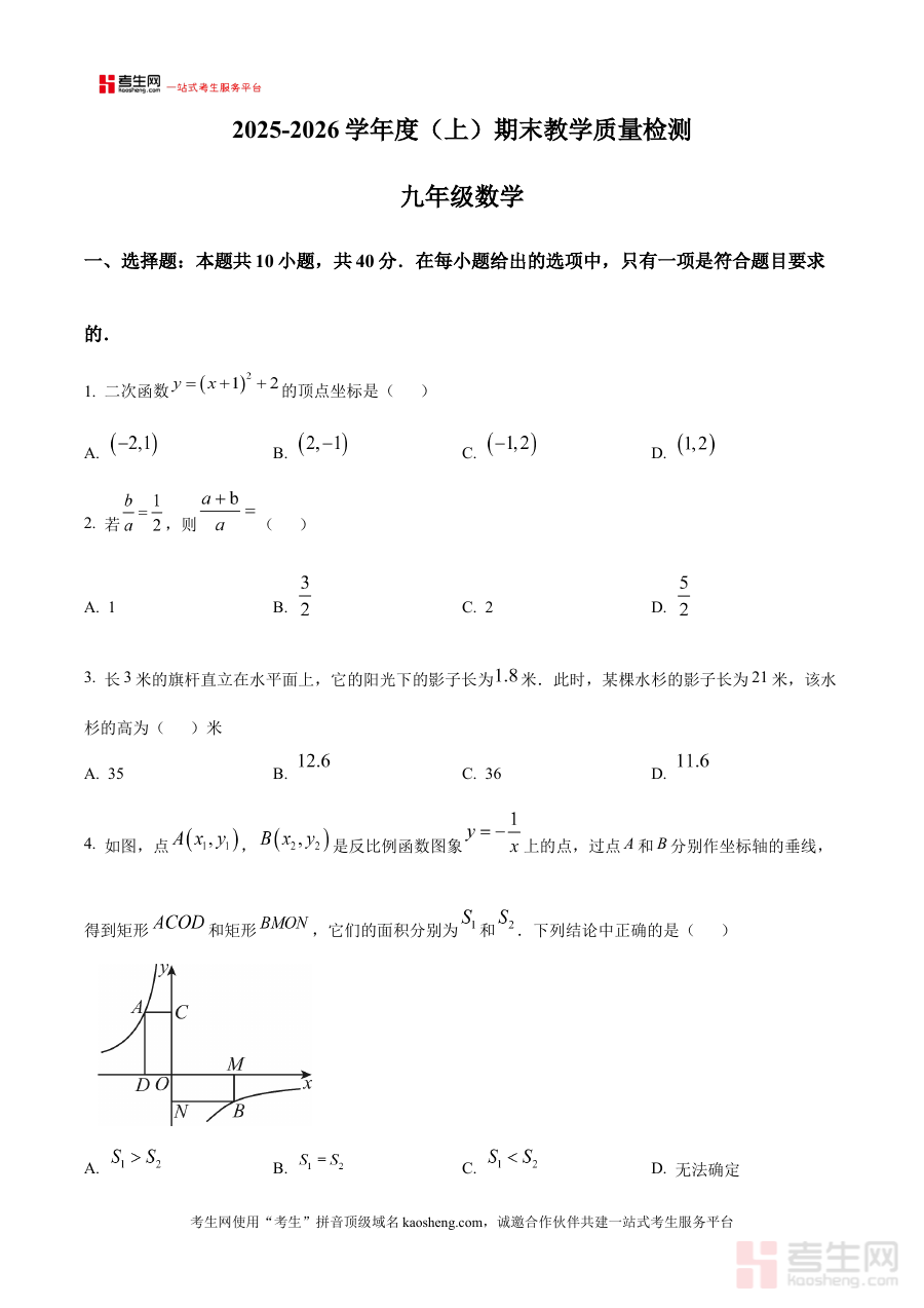 《精品解析:安徽合肥市肥西县2025-2026学年九年级上学期期末数学试卷(原卷版)》是针对安徽合肥市肥西县2025至2026学年九年级上学期期末数学考试编制的备考资料,聚焦该地区九年级上学期数学学科的期末检测需求,严格贴合当地教育部门的命题导向,完整呈现期末考试的试卷结构与考查范围,为相关教学与学习活动提供与实际考试高度一致的资源支持。