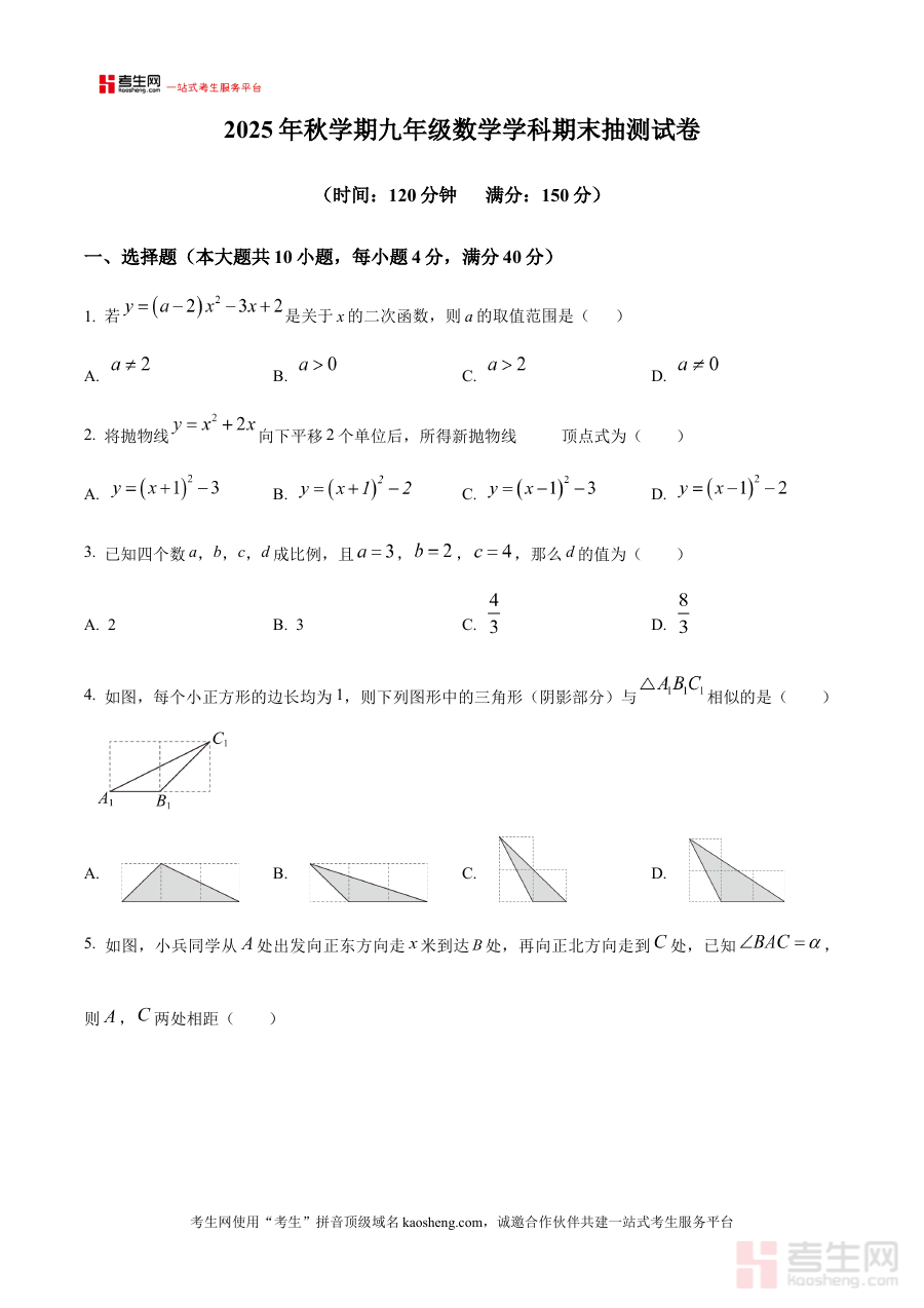 本资料适用于安徽合肥市长丰县范围内的九年级学生、数学教师及关注学生学业发展的家长群体。对学生而言,使用原卷进行模拟练习可提前适应期末抽测的节奏与要求,提升应试能力;对教师而言,可将其作为阶段检测的参考素材,辅助评估学生学习效果;对家长而言,能借助该资料了解孩子所在地区期末抽测的具体情况,更好配合学校与孩子开展备考工作,共同推动学生在数学学科上实现阶段性提升。