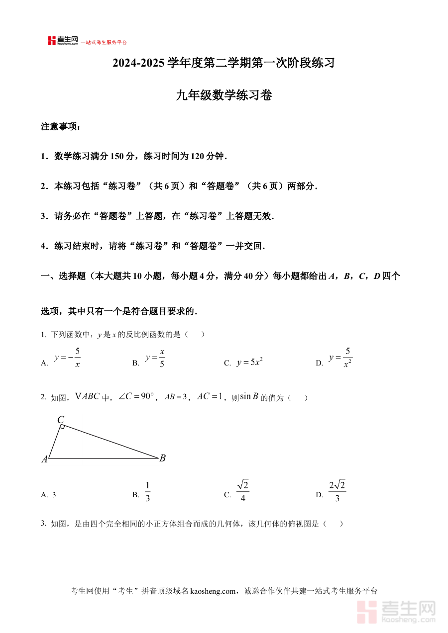 《精品解析:安徽省合肥市庐江县2024-2025学年九年级下学期3月月考数学试题(原卷版)》是针对2024-2025学年安徽省合肥市庐江县九年级下学期学生设计的数学阶段性考试资料。该资料对应本地特定学年与学段的3月月考,贴合庐江县初中数学教学进度与命题特点,为学生提供了与实际考试形式一致的原卷内容,是九年级下学期数学学习过程中进行阶段性备考的重要参考资源,能够帮助学生提前熟悉本地月考的组织形式与考查方向。