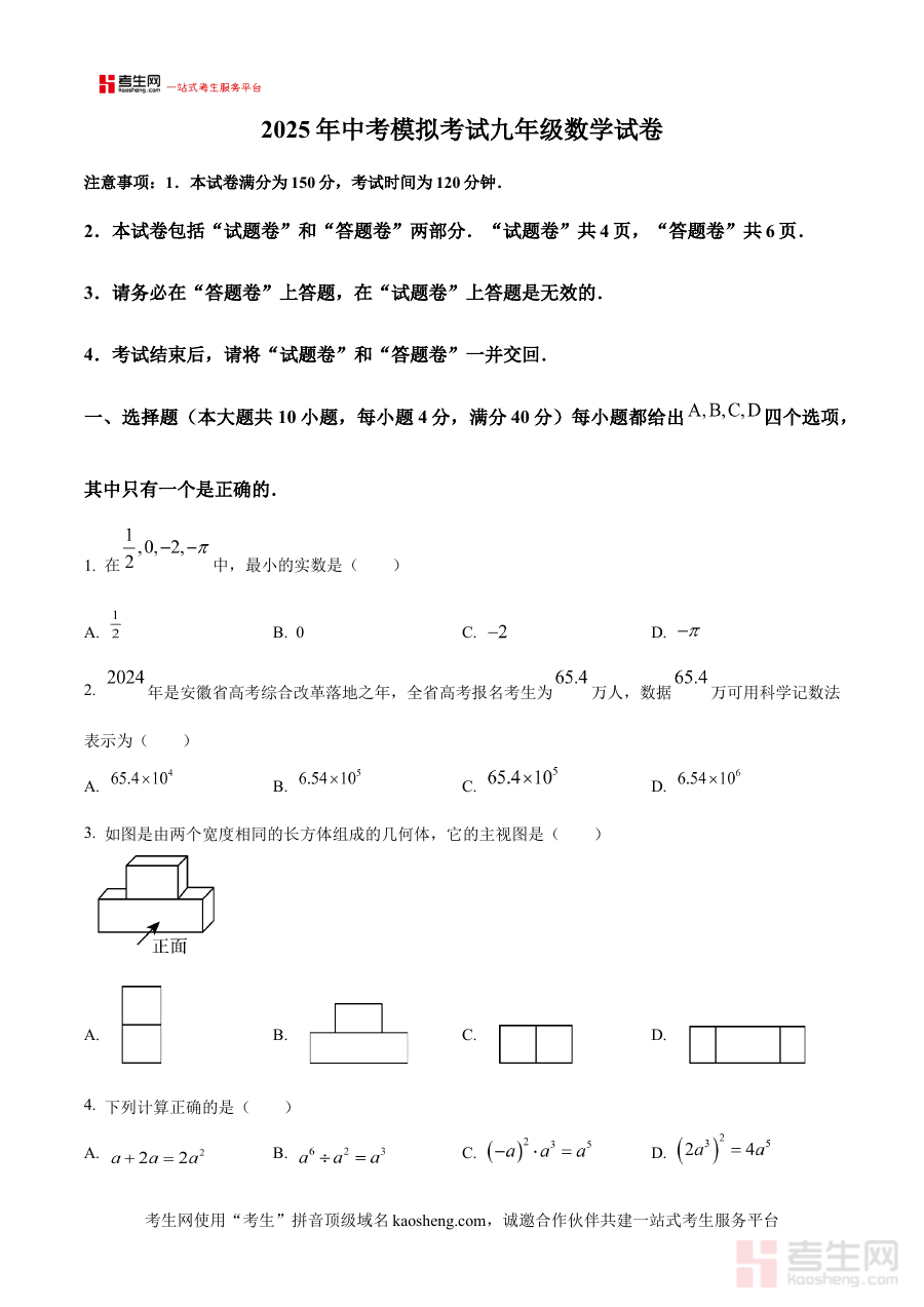 本资料适用于安徽省合肥市庐江县区域内的九年级学生、数学教师及中考备考指导者。对于学生而言,它是中考冲刺阶段进行阶段性自我检测的重要工具,有助于提前适应联考的命题风格与难度梯度;对于教师而言,它能辅助开展针对性教学与个性化辅导,精准解决学生的学习问题;对于备考指导者来说,它可作为分析区域联考趋势、制定高效备考方案的参考素材,整体提升备考效率与质量,为中考取得优异成绩奠定基础。