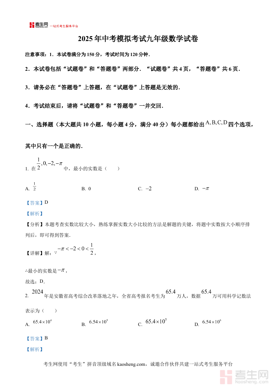 《精品解析:安徽省合肥市庐江县联考2024-2025学年九年级下学期4月月考数学试题(解析版)》是针对2024-2025学年安徽省合肥市庐江县区域内九年级下学期4月联考数学科目的专项备考资料。该资料依托当地联考的命题背景,聚焦九年级下学期关键阶段的数学学习内容,为使用者提供与区域考试要求高度匹配的解析资源,助力师生对接本地联考的考查方向与评价标准,是贴合区域教学实际的阶段性备考支持材料。