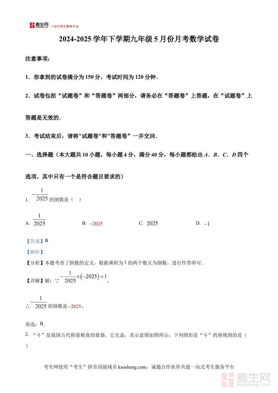 《精品解析:安徽省合肥市瑶海区众望初级中学2024-2025学年下学期九年级5月月考数学试卷(解析版)》是针对安徽省合肥市瑶海区众望初级中学在2024-2025学年下学期面向九年级学生组织的5月数学月考所编制的配套解析资料。这份资料紧密贴合该校该学年下学期的数学教学进度,聚焦九年级5月这一中考备考关键阶段的学习目标与检测需求,为使用者提供与本次月考直接对应的详细解析内容,是一份高度贴合该校教学实际和学生阶段性学习特点的备考辅助材料。