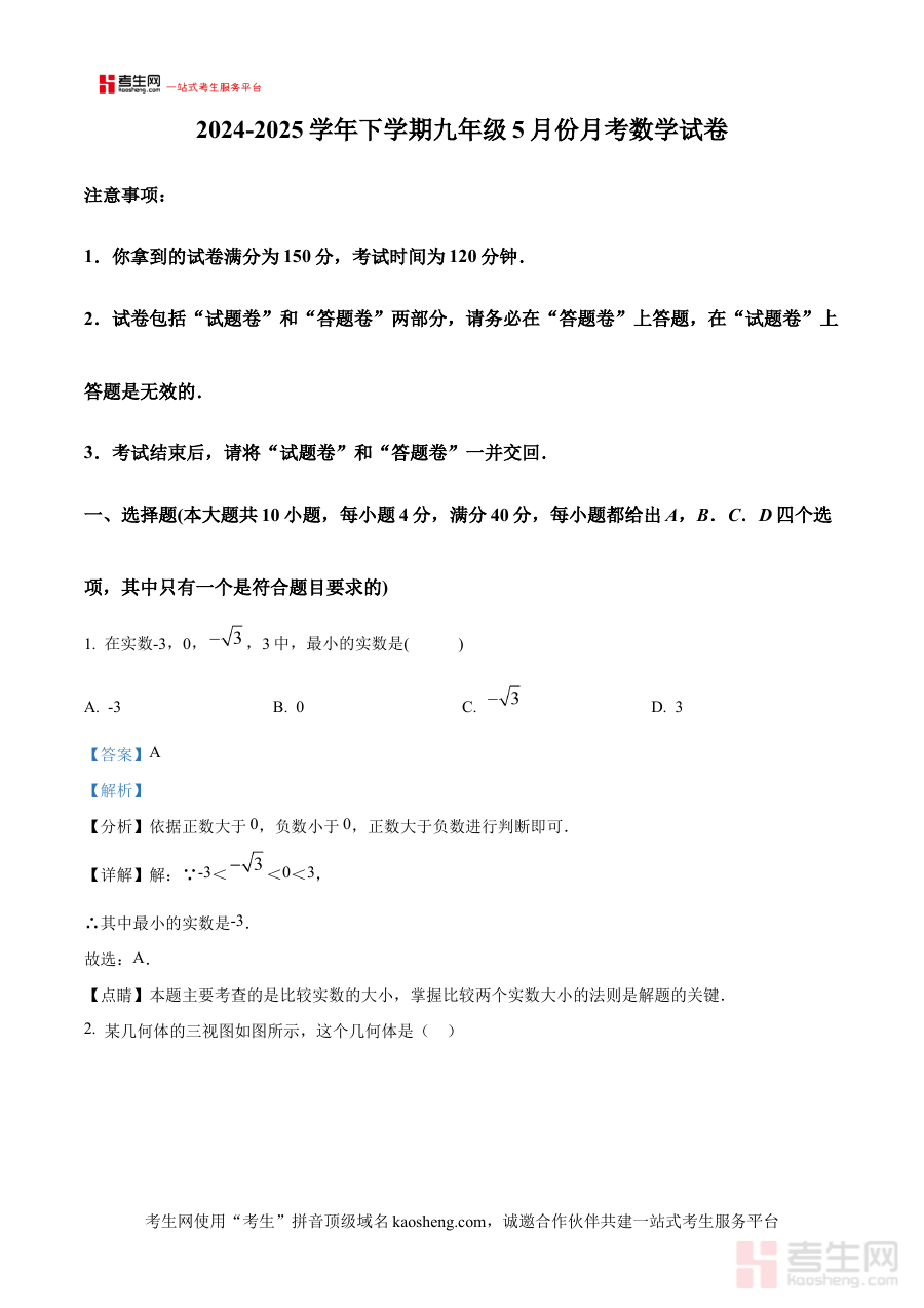 此资料的核心适用人群为安徽省合肥市第四十五中学芙蓉分校2024-2025学年下学期的九年级学生,可辅助其进行自我检测与知识梳理;该校数学教师可借助该资料了解学生的学习状况,优化教学方案与辅导重点;家长也能通过资料内容掌握孩子的数学学习动态,配合学校开展针对性辅导,共同为学生中考前的关键阶段数学能力提升提供支持,确保学习方向与学校要求保持一致。
