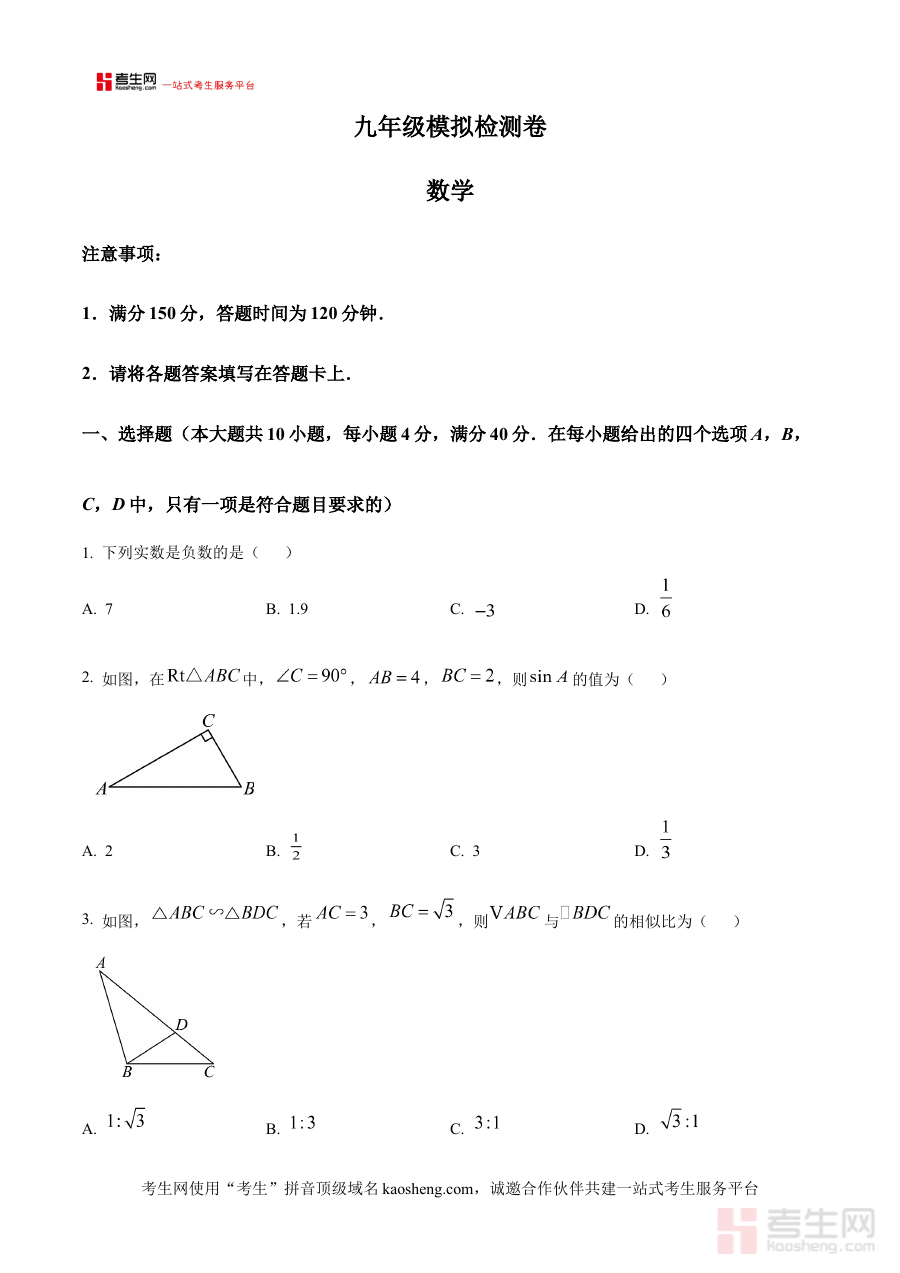 这份资料主要用于初三学生的学情诊断与阶段检测,帮助使用者及时了解自身在数学学习上的掌握程度与薄弱环节,为后续的备考规划提供数据支撑与方向指引。同时,它也可作为教师开展教学评估与试题分析的工具,辅助教师调整教学策略,使教学更具针对性;对于备考规划而言,这份资料能让使用者提前熟悉中考一模的考试节奏与命题特点,为后续的系统复习打下基础。