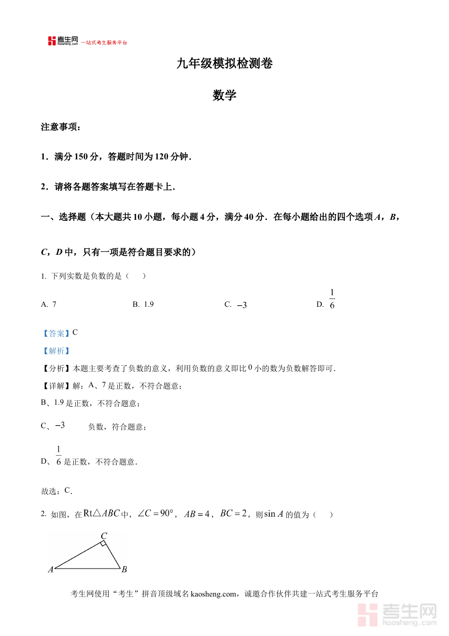 该解析版资料主要用于辅助使用者开展学情精准诊断、科学备考规划以及有效阶段检测。通过对试卷内容的系统化专业解析,使用者能够清晰识别自身在数学学科各知识模块的掌握深度与广度,精准定位学习过程中存在的薄弱环节与知识盲区,进而为后续的备考计划调整与复习重点确定提供可靠依据;同时,它也可作为阶段检测效果的重要验证工具,帮助使用者客观评估阶段性学习成果是否达到预期目标,确保备考方向始终与中考要求保持一致。