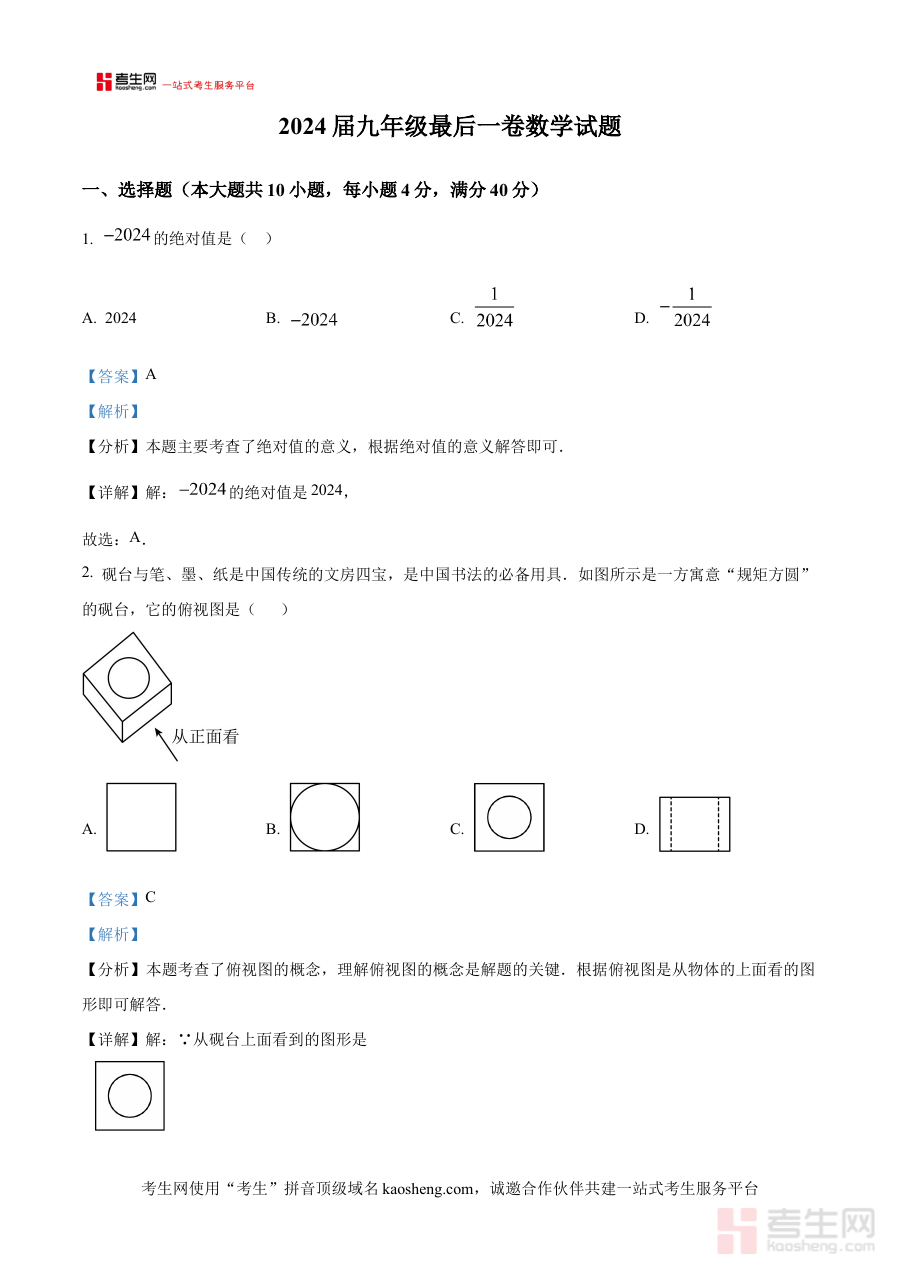 《精品解析:2024年安徽省合肥一六八陶冲湖中学中考模拟数学最后一卷(解析版)》是2024年安徽省合肥市中考数学科目的针对性备考资料,由合肥一六八陶冲湖中学编制推出,面向中考前最后阶段的模拟训练需求。该资料结合当地中考数学的命题特点与该校教学实践积累,为使用者提供贴近实际考试场景的练习载体,助力其在考前完成全面的自我评估与知识巩固,是中考冲刺阶段的重要参考资源。