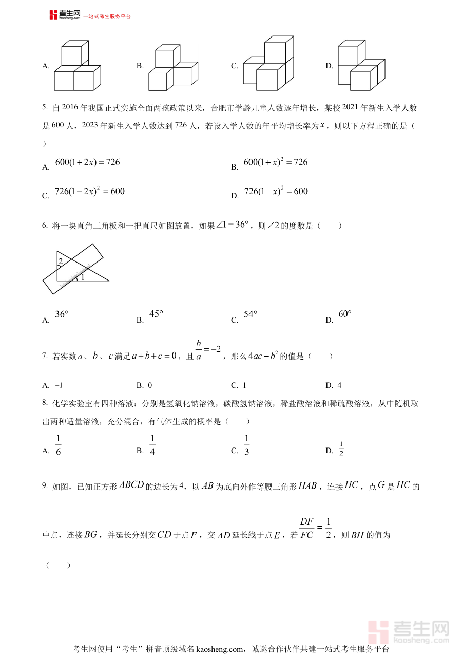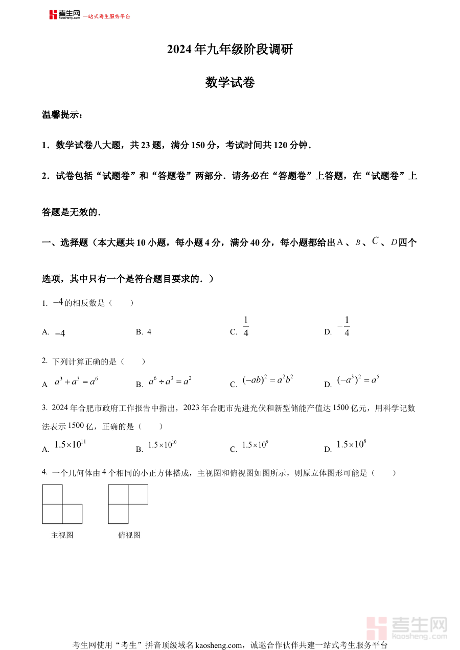 《精品解析:2024年安徽省合肥市中考二模数学试题(原卷版)》是针对2024年安徽省合肥市初中毕业生中考前第二次模拟考试设计的数学学科原卷形式备考资料。该资料严格贴合合肥市本地中考命题的区域特点与阶段要求,能够为考生提供与实际二模考试高度一致的试卷呈现形式,帮助使用者提前适应考试场景与命题风格,是中考备考过程中具有重要参考价值的阶段性资料。